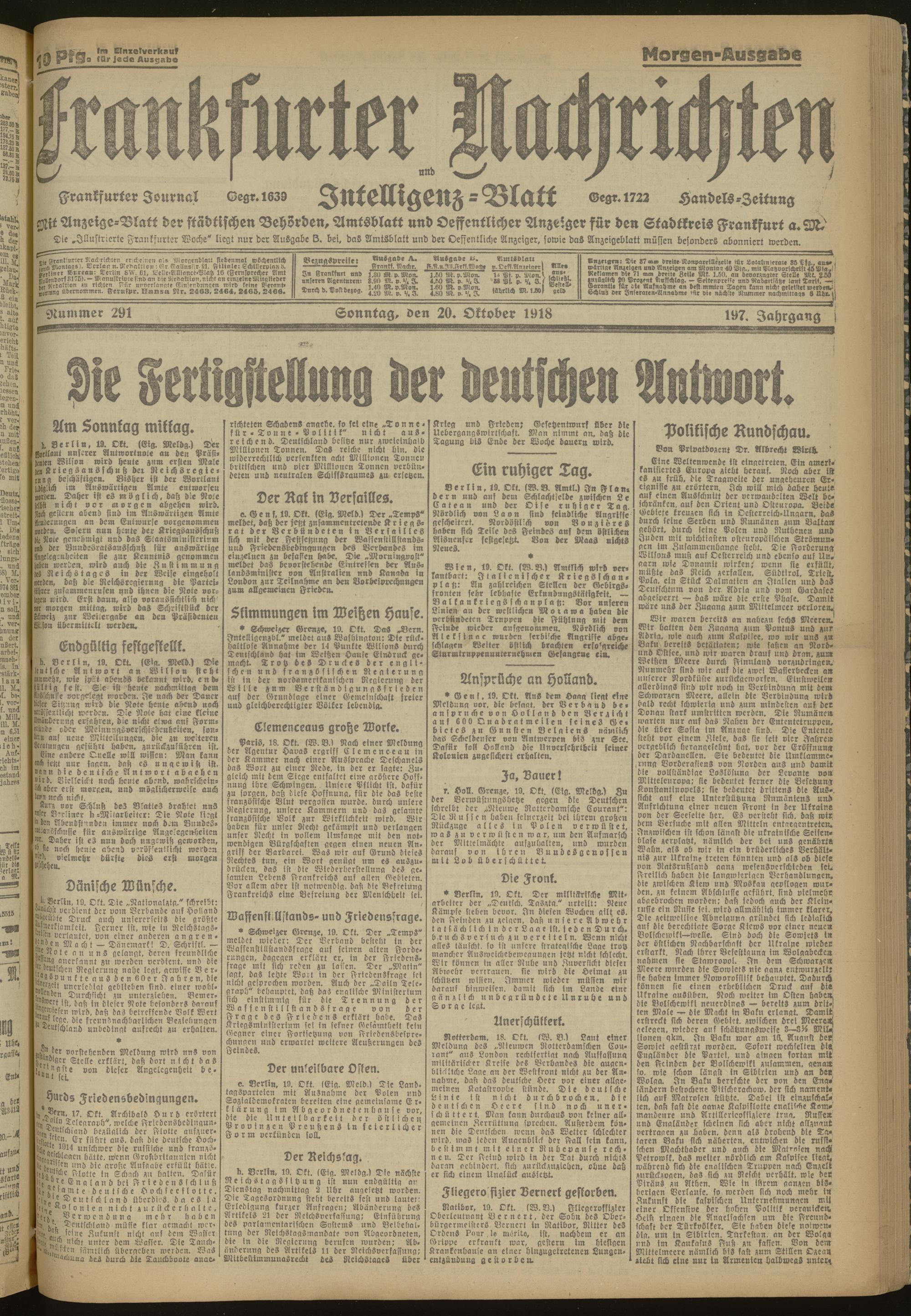 20.10.1918 Morgen-Ausgabe = Nr. 291