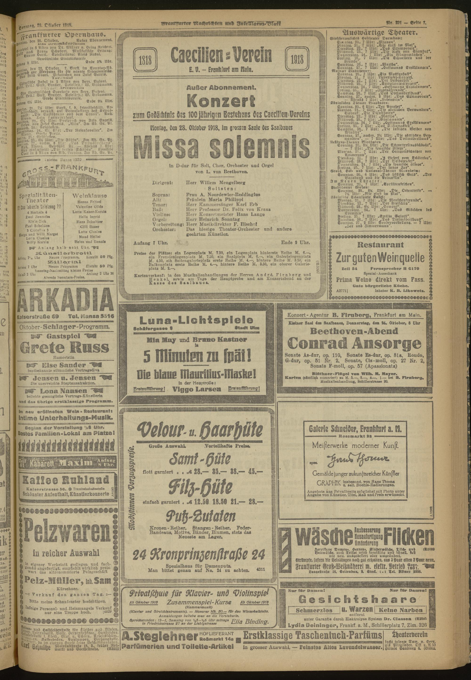 20.10.1918 Morgen-Ausgabe = Nr. 291
