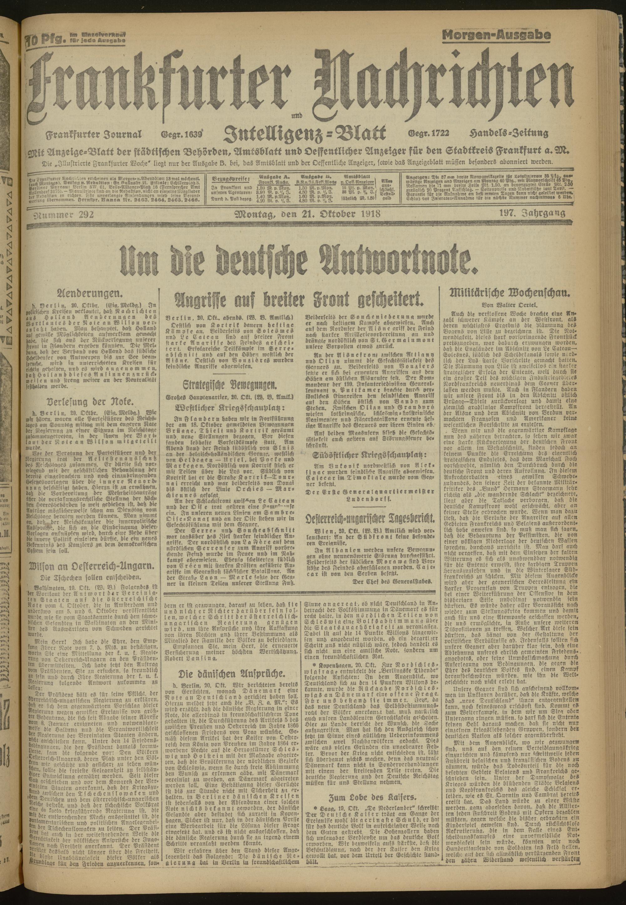 21.10.1918 Morgen-Ausgabe = Nr. 292