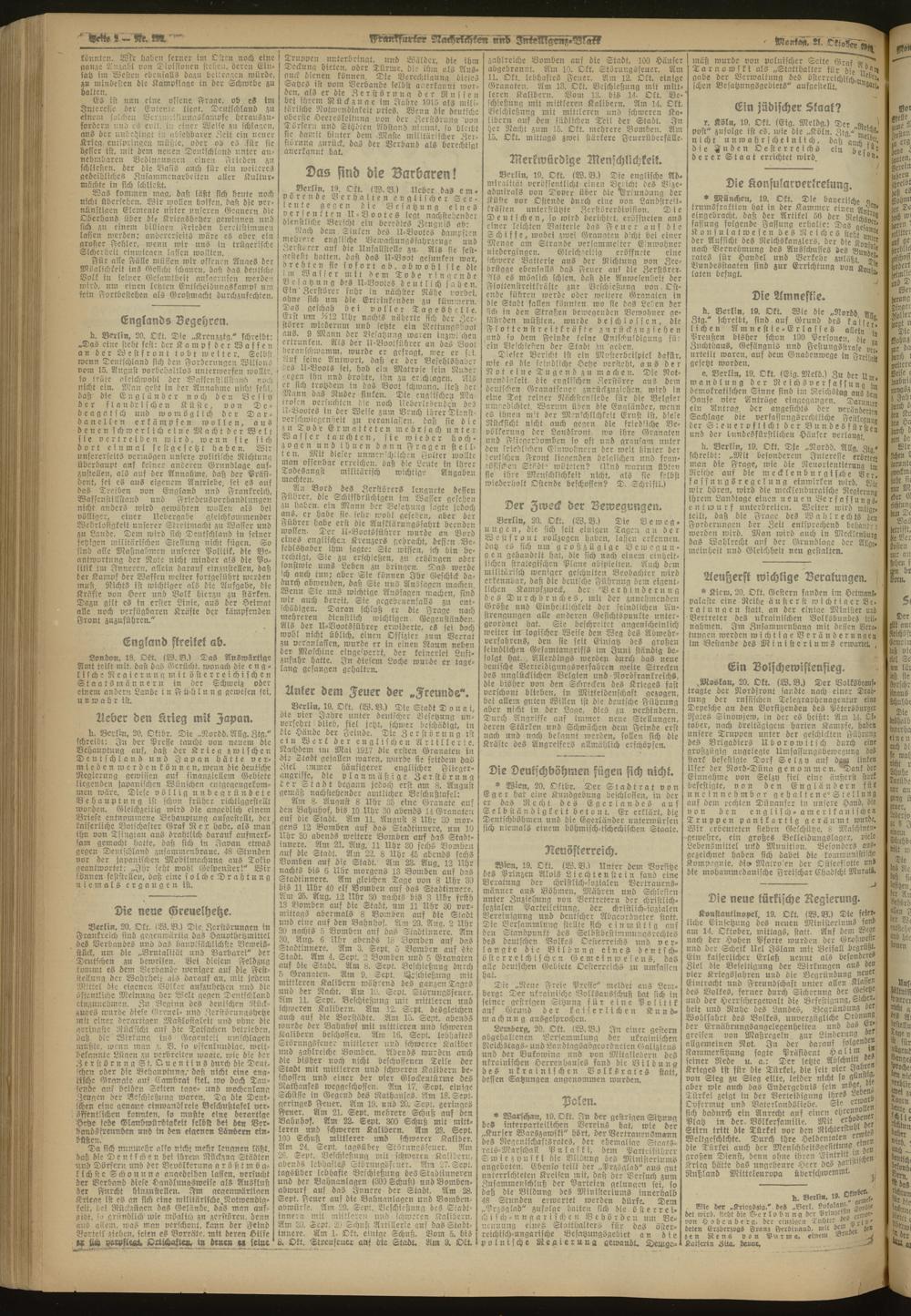 21.10.1918 Morgen-Ausgabe = Nr. 292