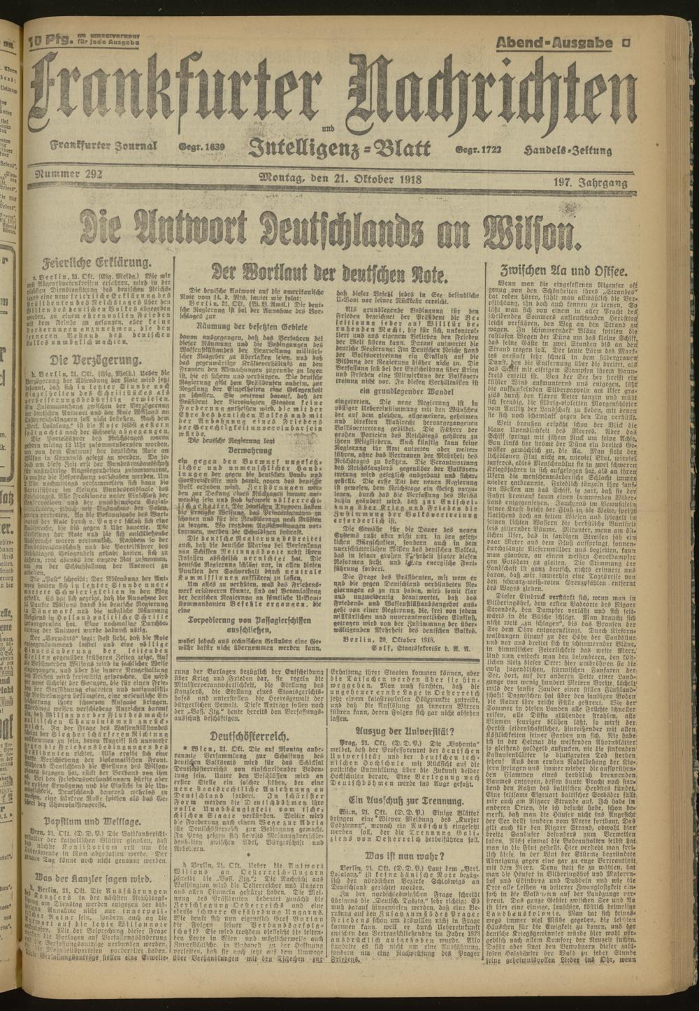 21.10.1918 Abend-Ausgabe = Nr. 292