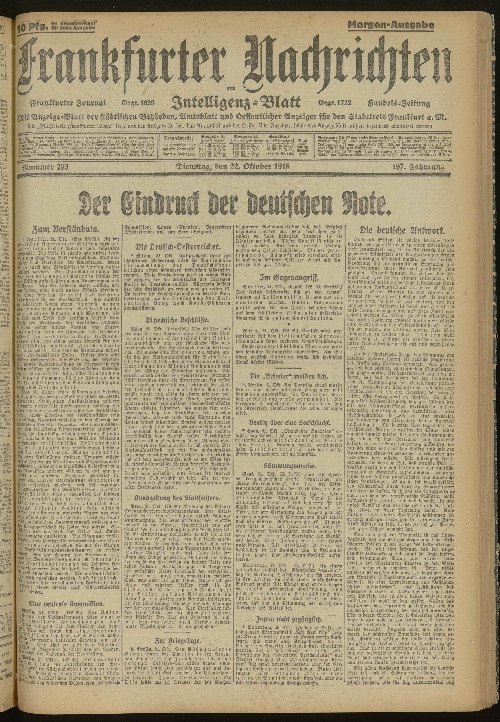 22.10.1918 Morgen-Ausgabe = Nr. 293