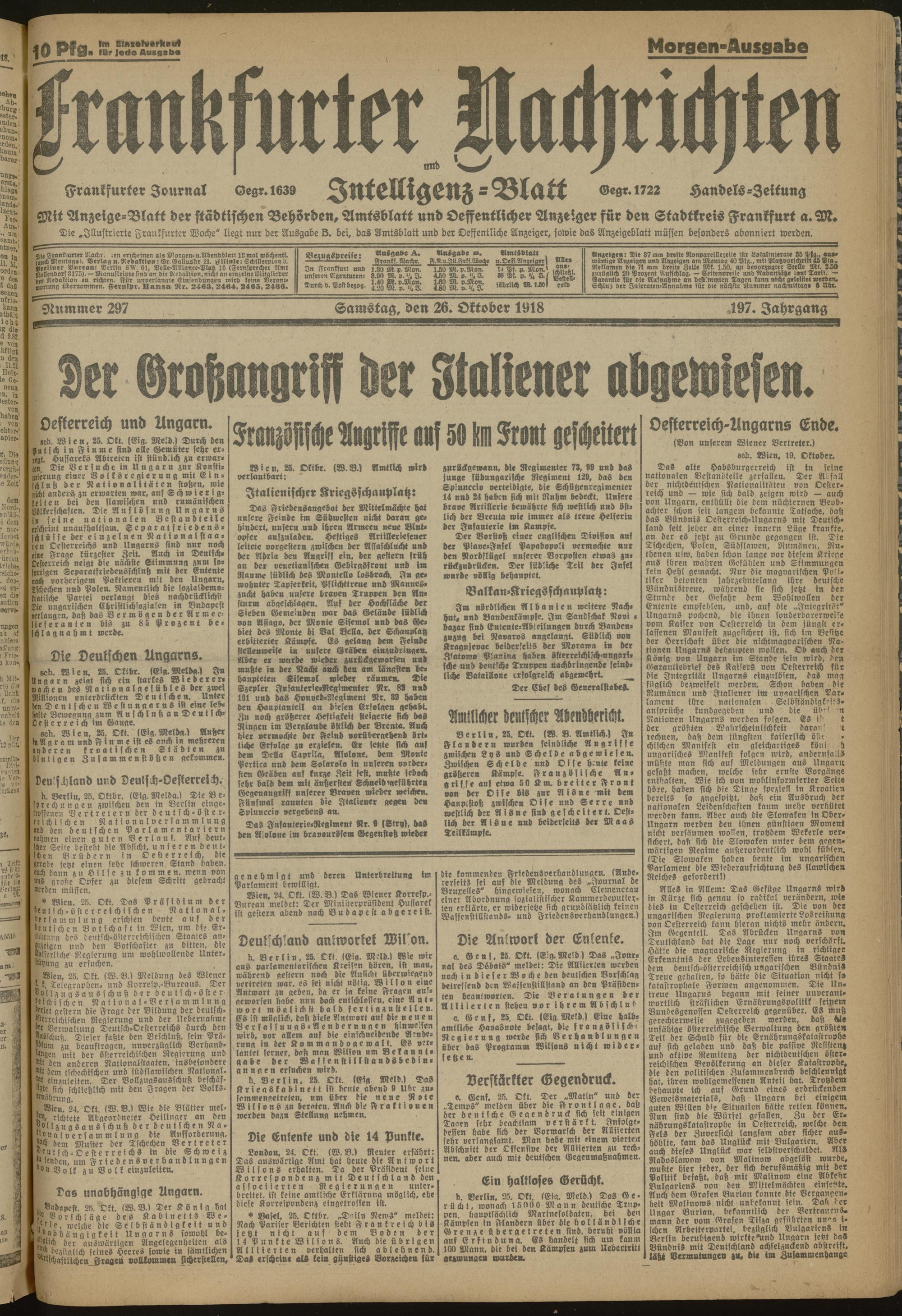 26.10.1918 Morgen-Ausgabe = Nr. 297