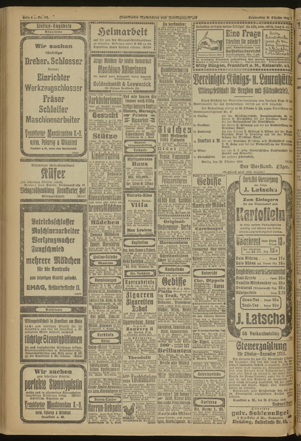 31.10.1918 Morgen-Ausgabe = Nr. 302