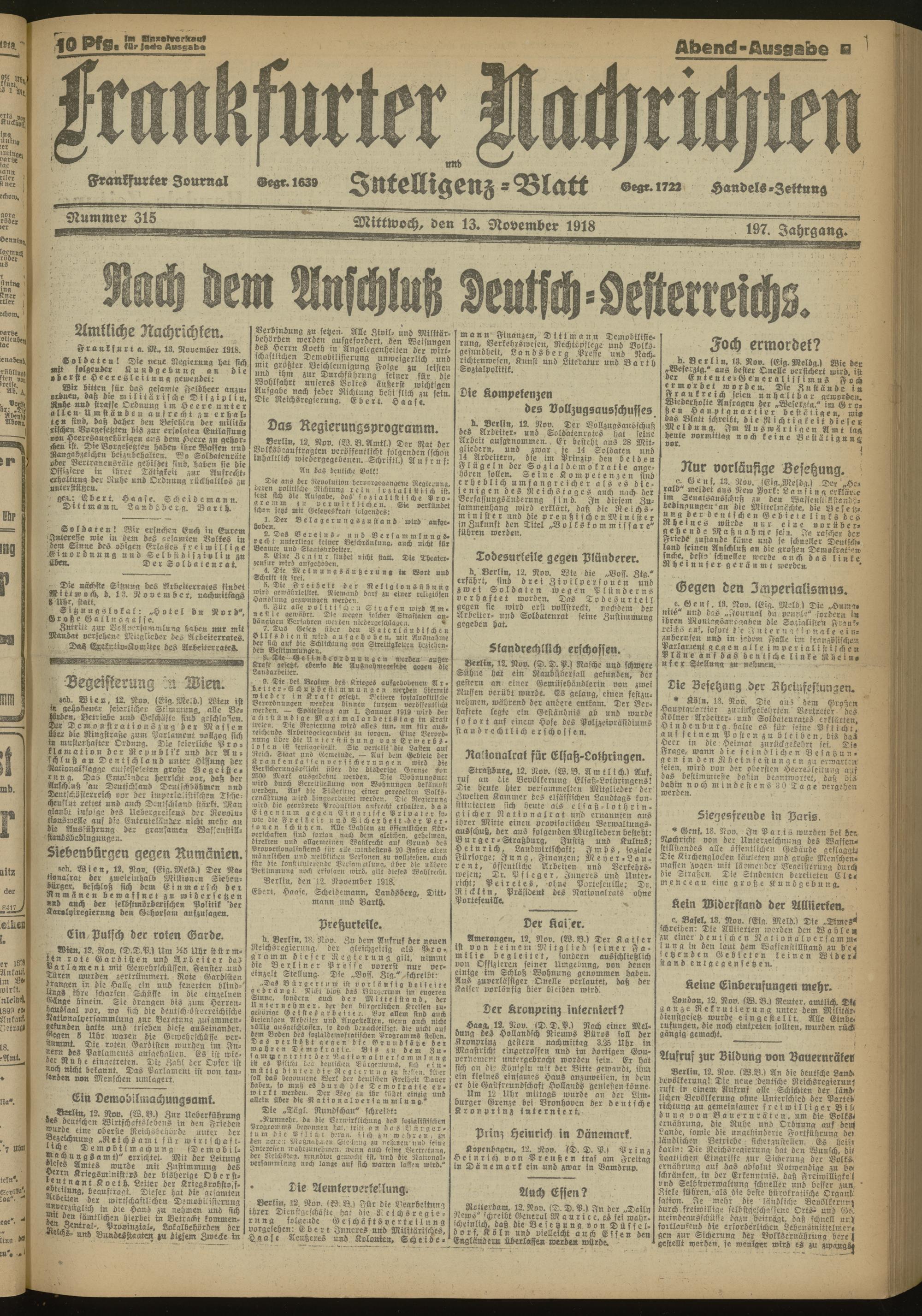 13.11.1918 Abend-Ausgabe = Nr. 315