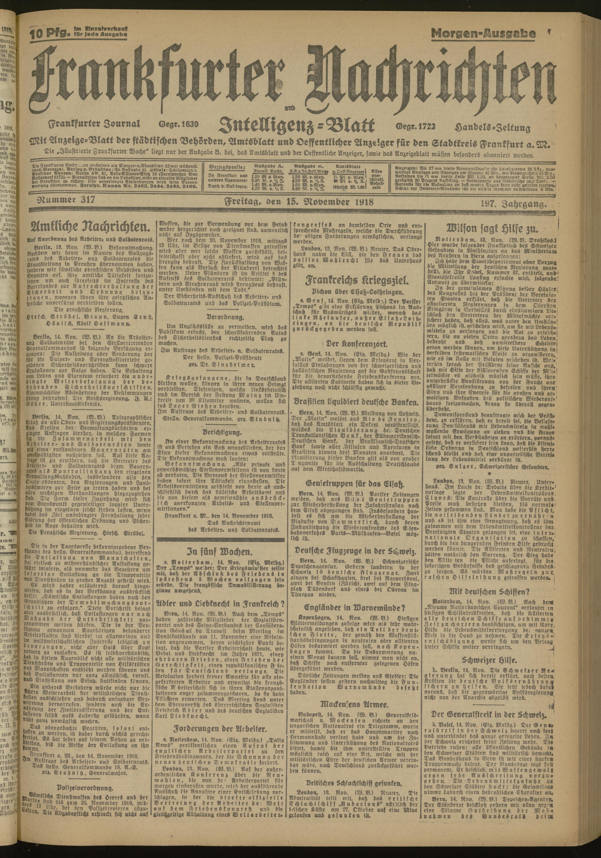 15.11.1918 Morgen-Ausgabe = Nr. 317