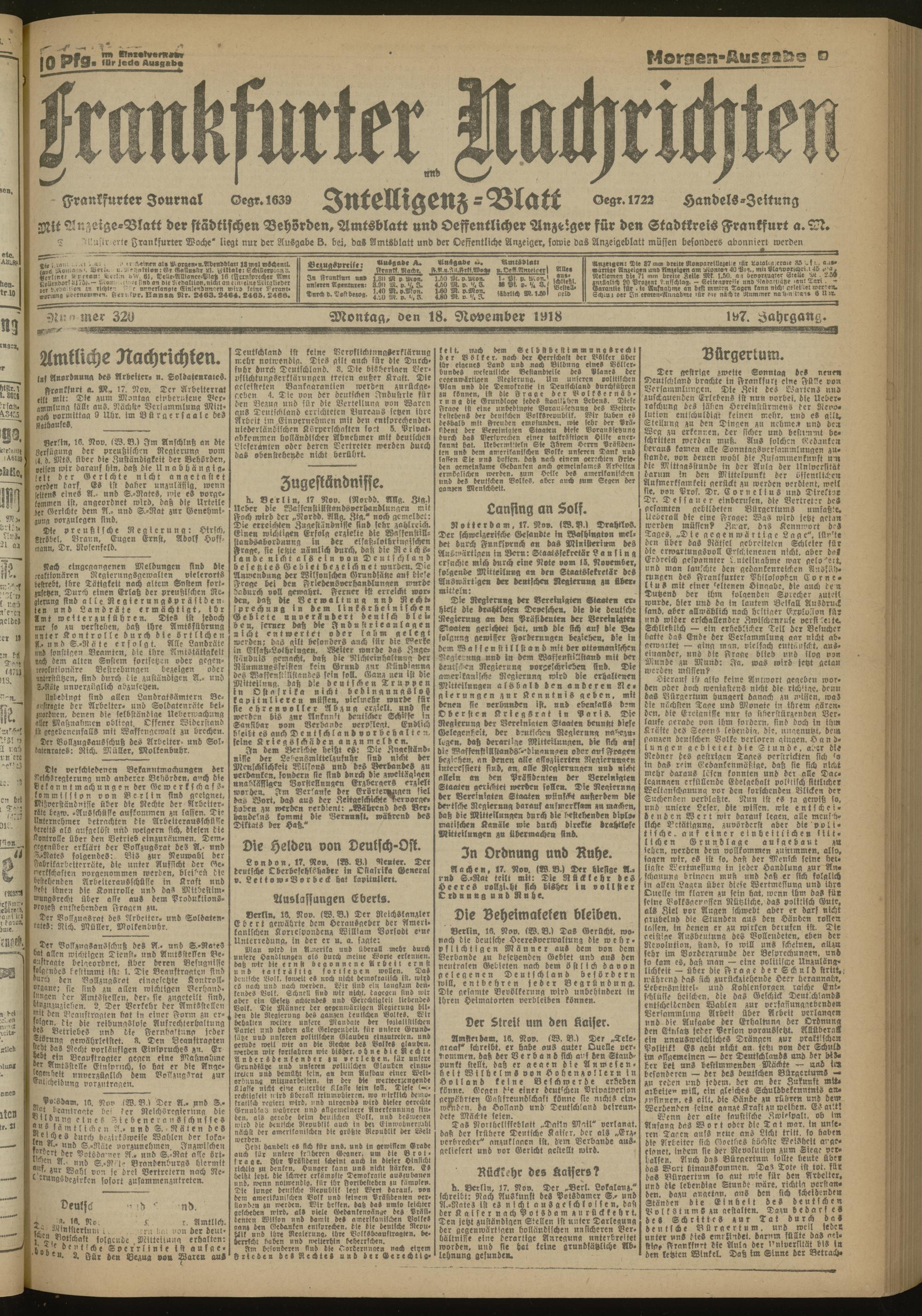 18.11.1918 Morgen-Ausgabe = Nr. 320
