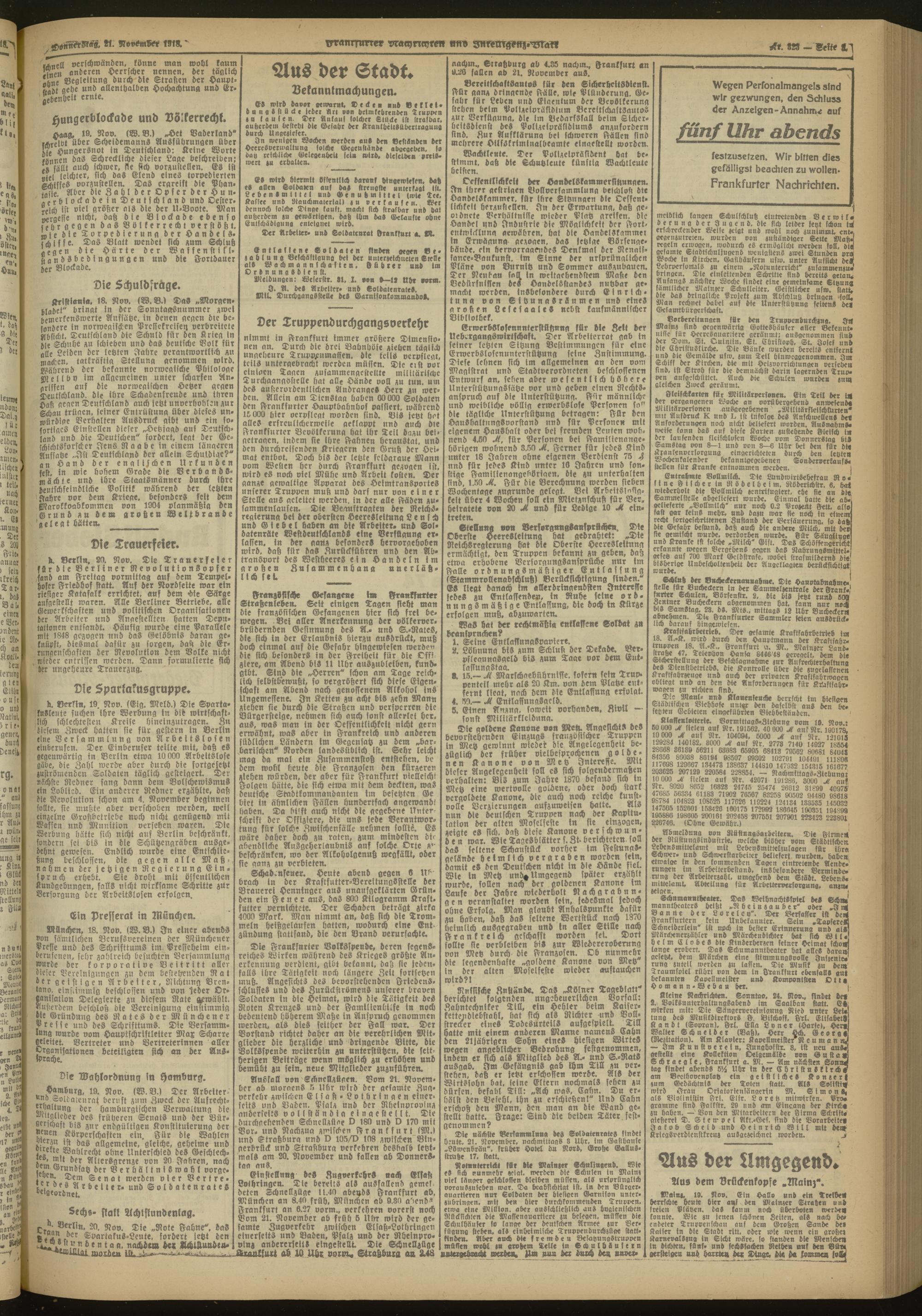 21.11.1918 Morgen-Ausgabe = Nr. 323