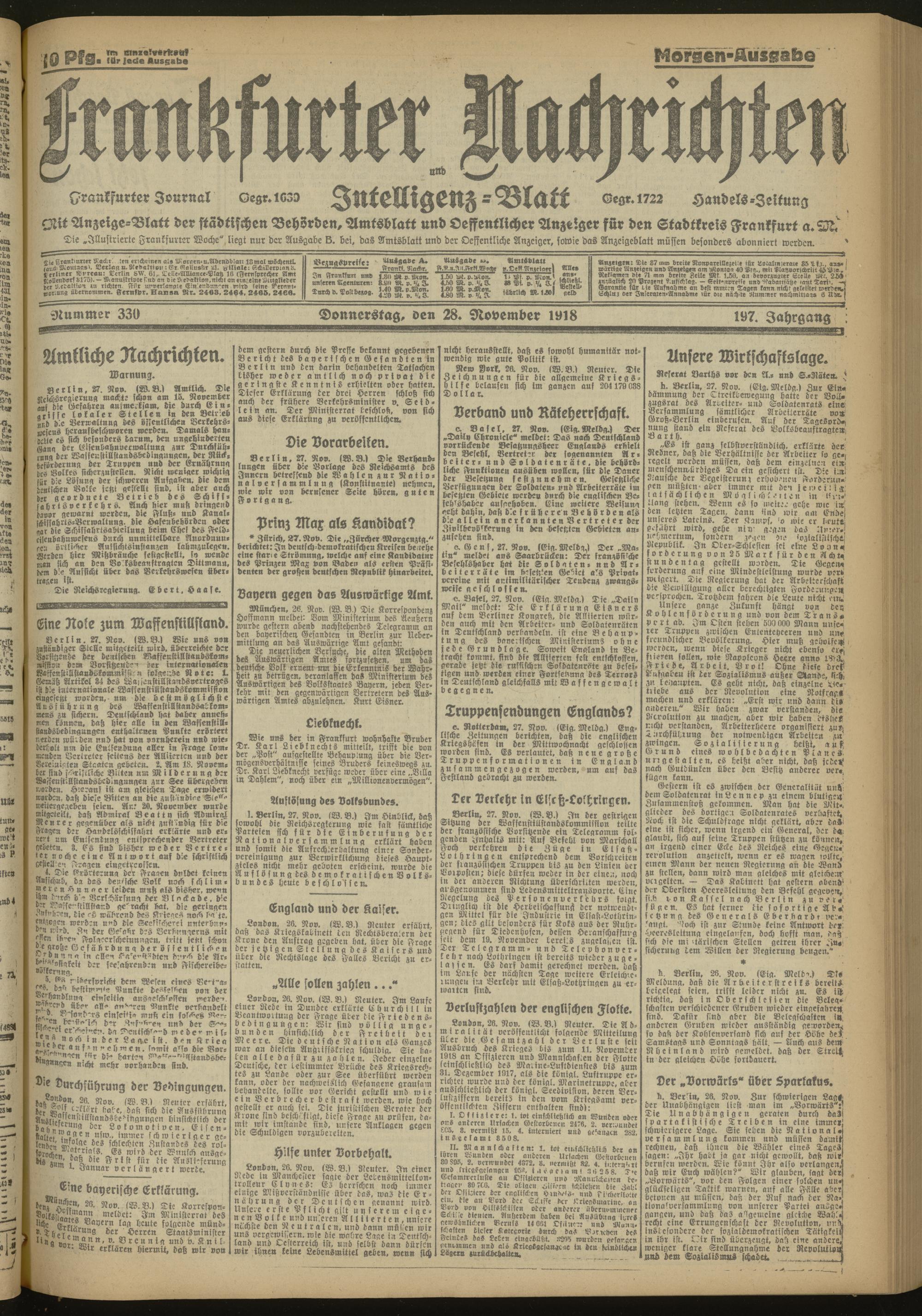 28.11.1918 Morgen-Ausgabe = Nr. 330
