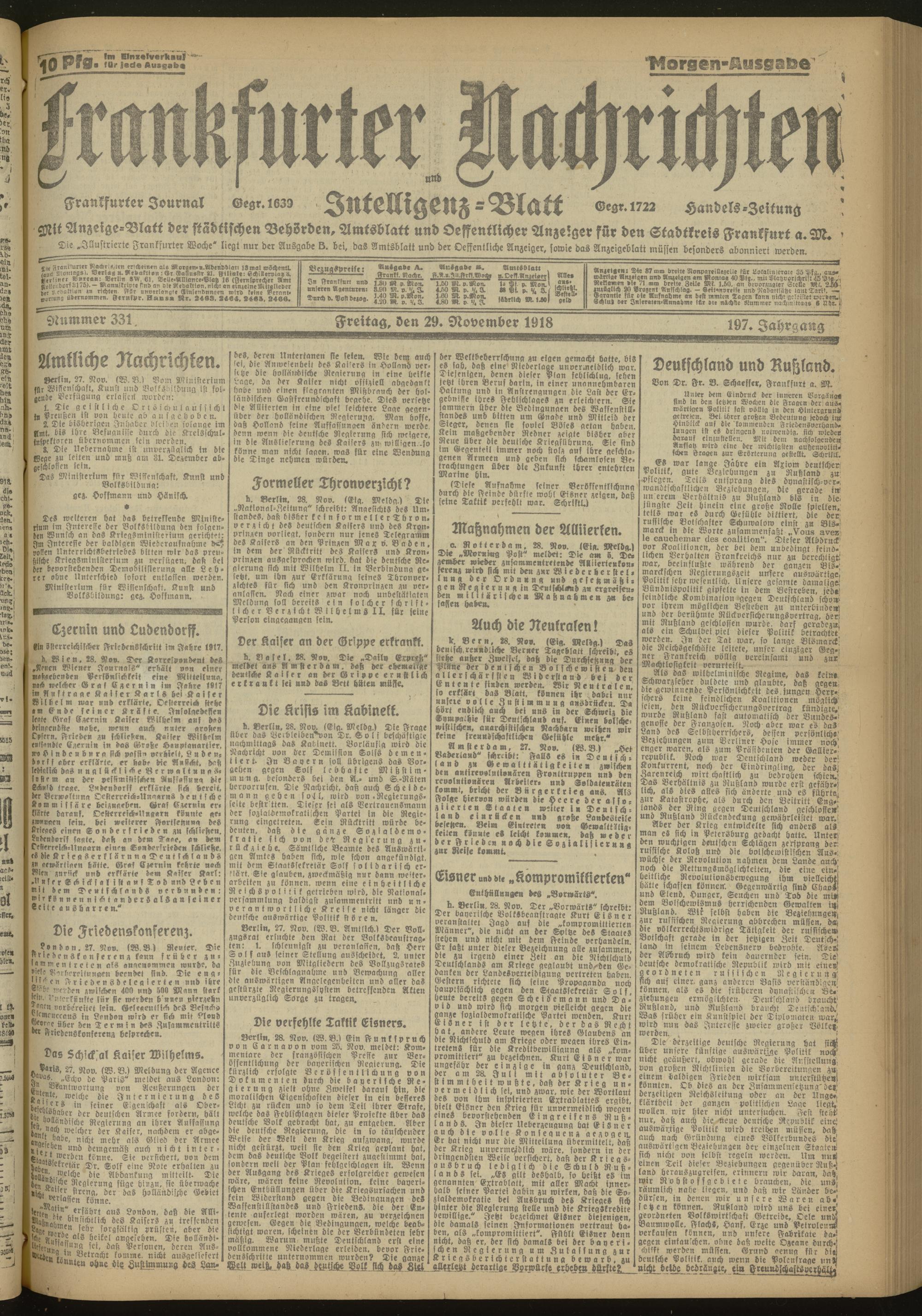29.11.1918 Morgen-Ausgabe = Nr. 331