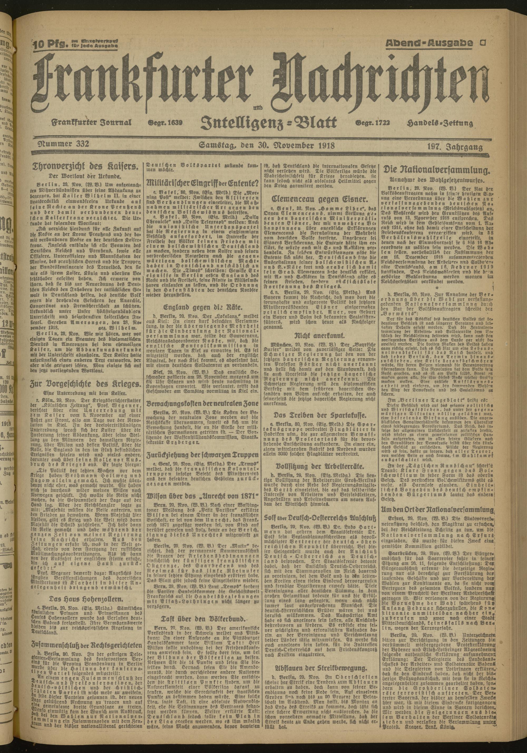 30.11.1918 Abend-Ausgabe = Nr. 332