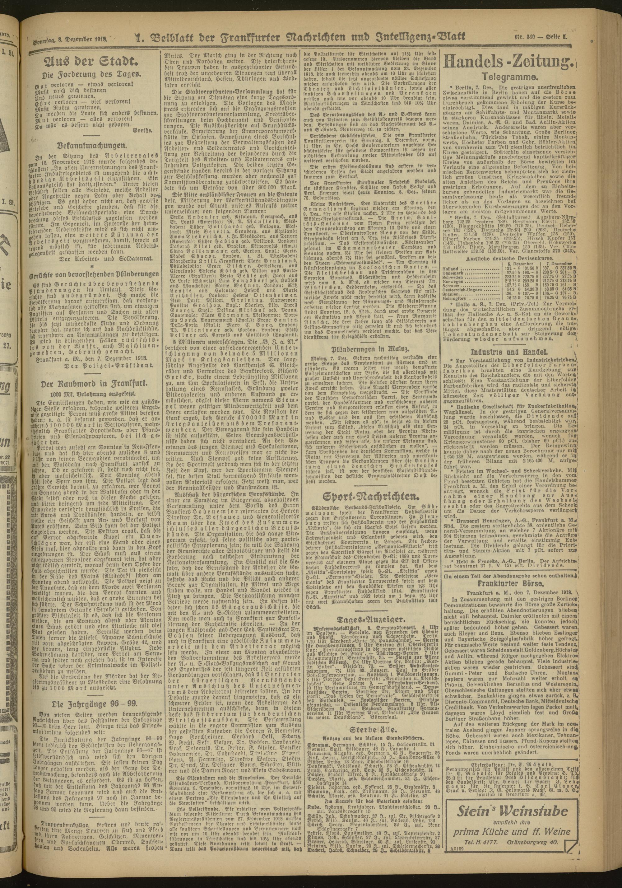 08.12.1918 Morgen-Ausgabe = Nr. 340