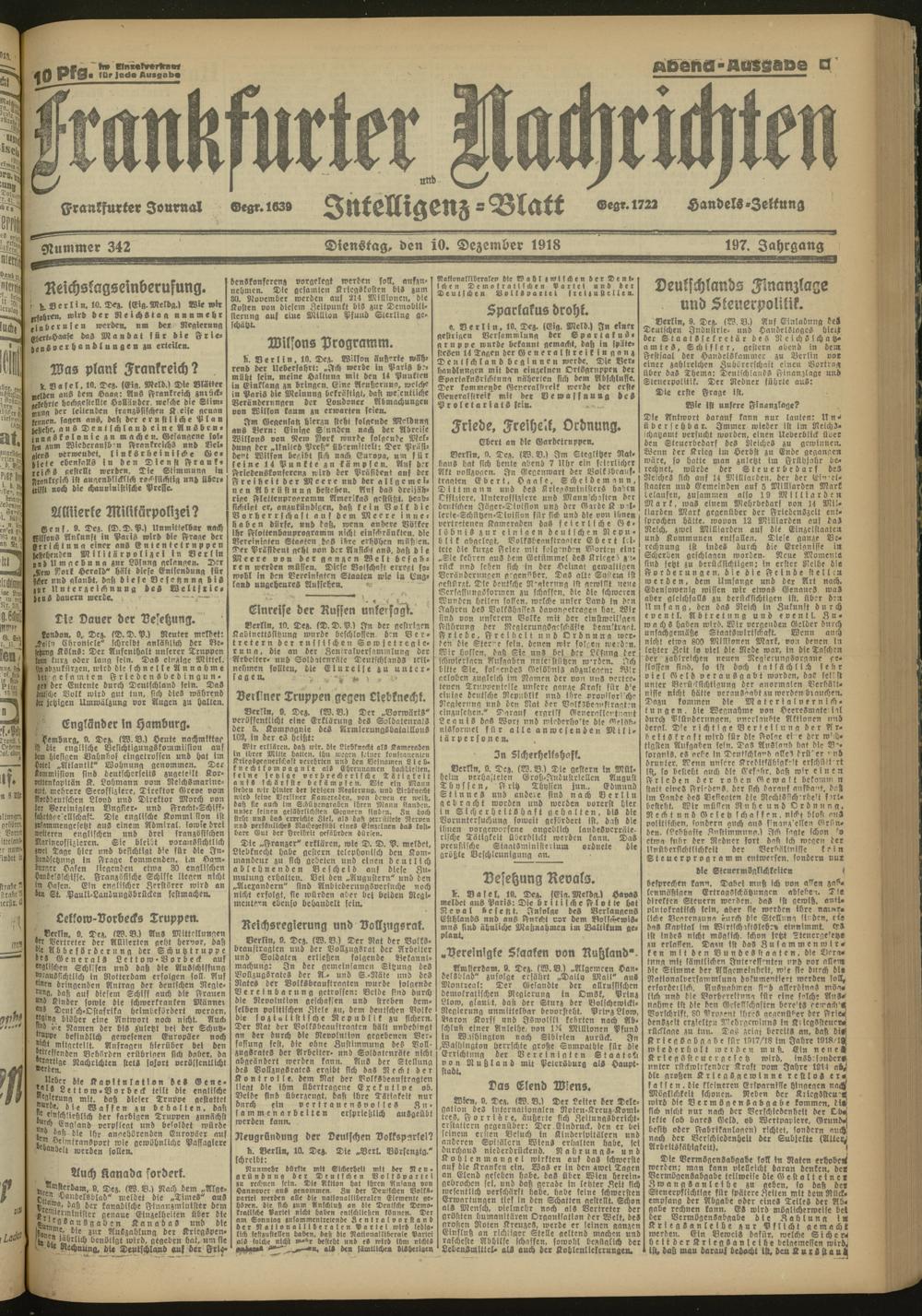 10.12.1918 Abend-Ausgabe = Nr. 342