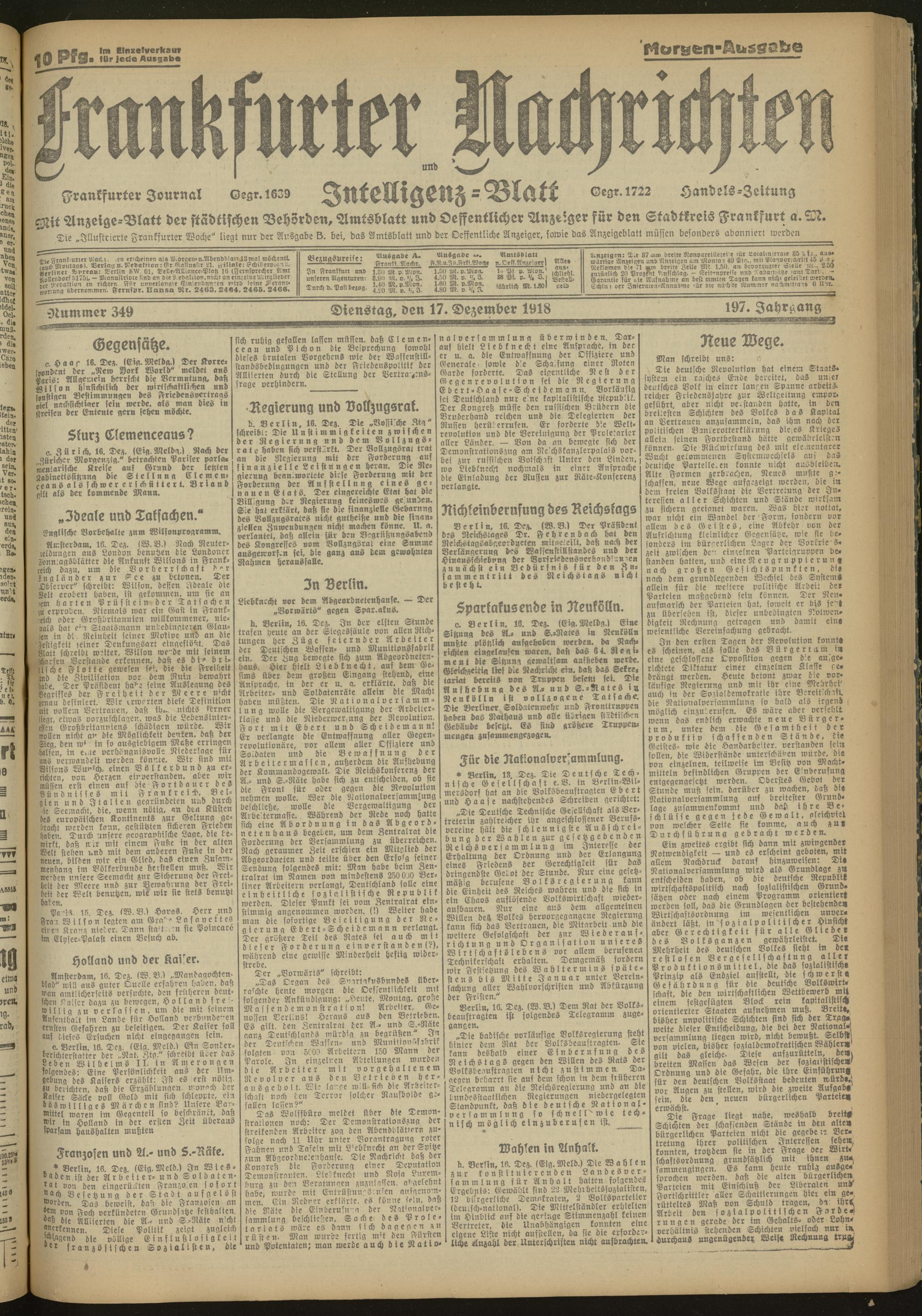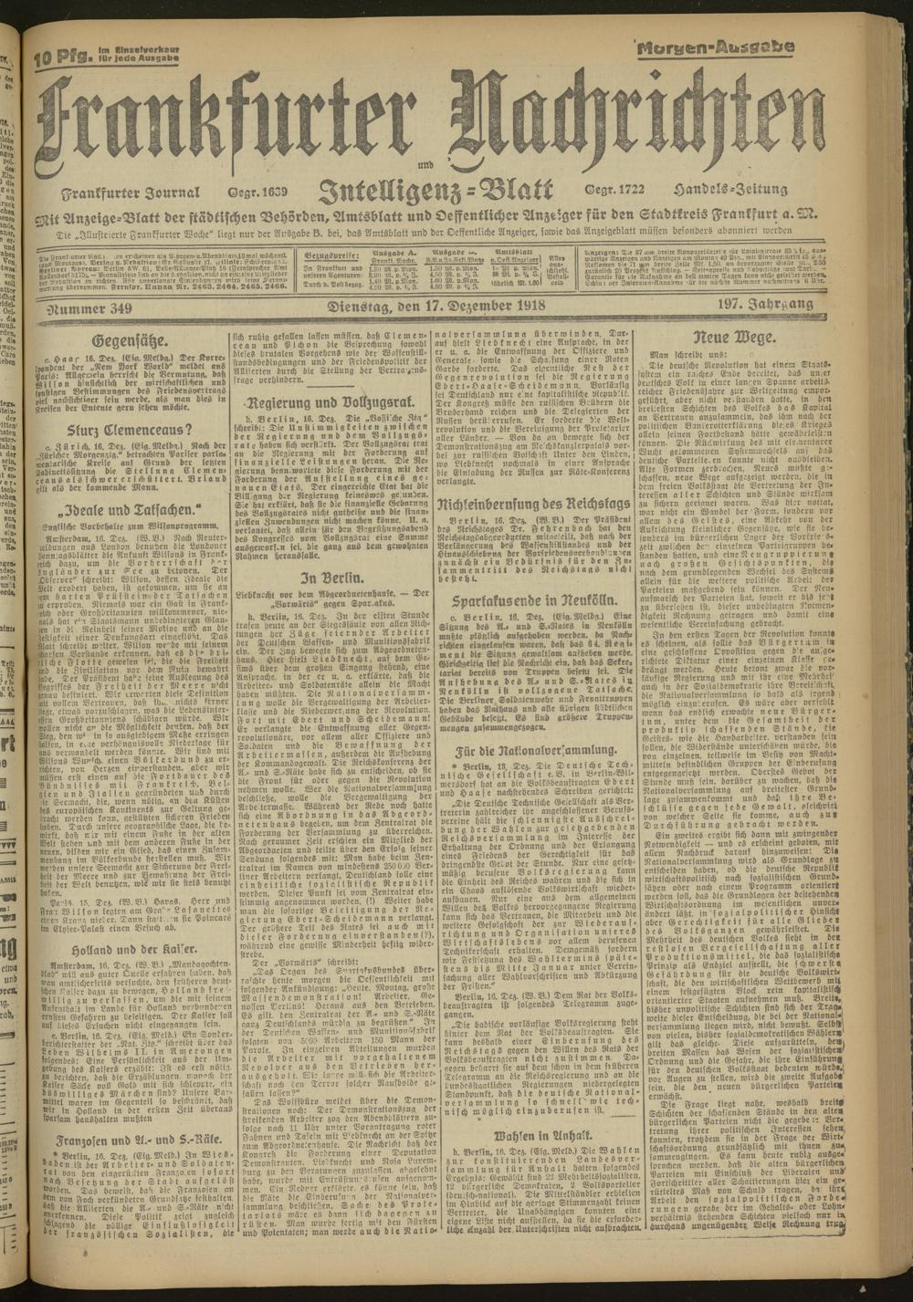 17.12.1918 Morgen-Ausgabe = Nr. 349