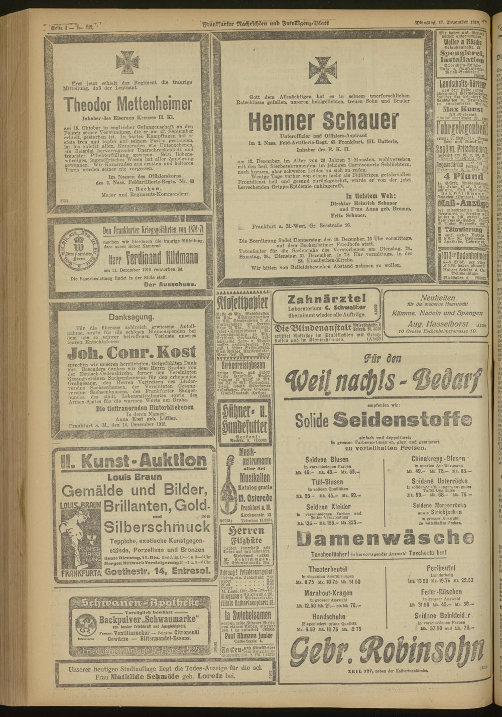 Frankfurter Nachrichten und Intelligenzblatt. 1914-1918