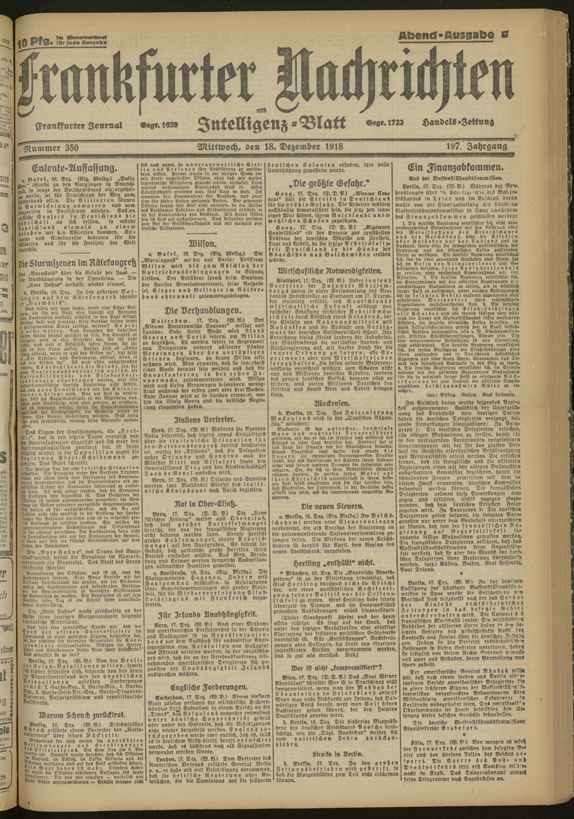18.12.1918 Abend-Ausgabe = Nr. 350