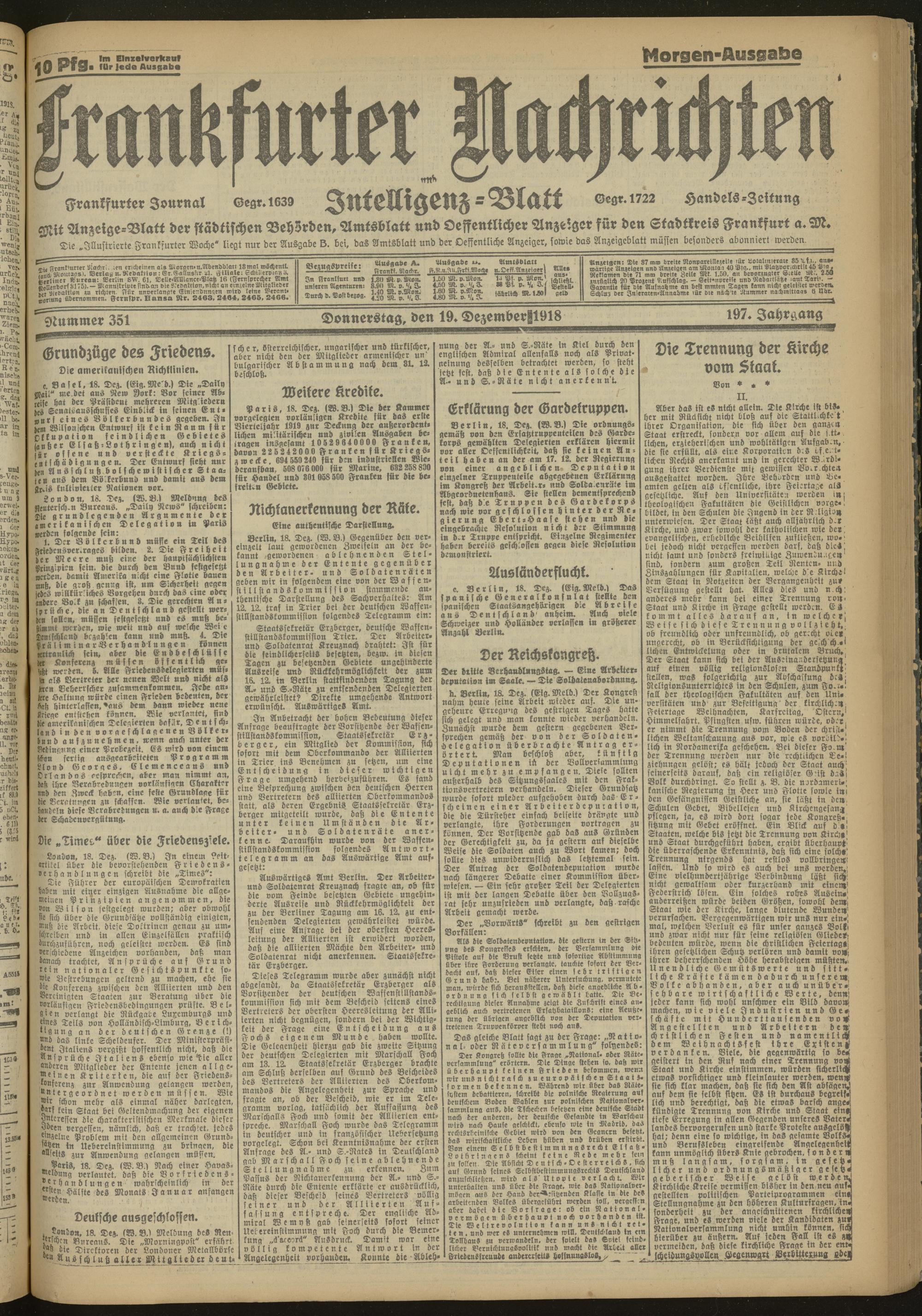 19.12.1918 Morgen-Ausgabe = Nr. 351