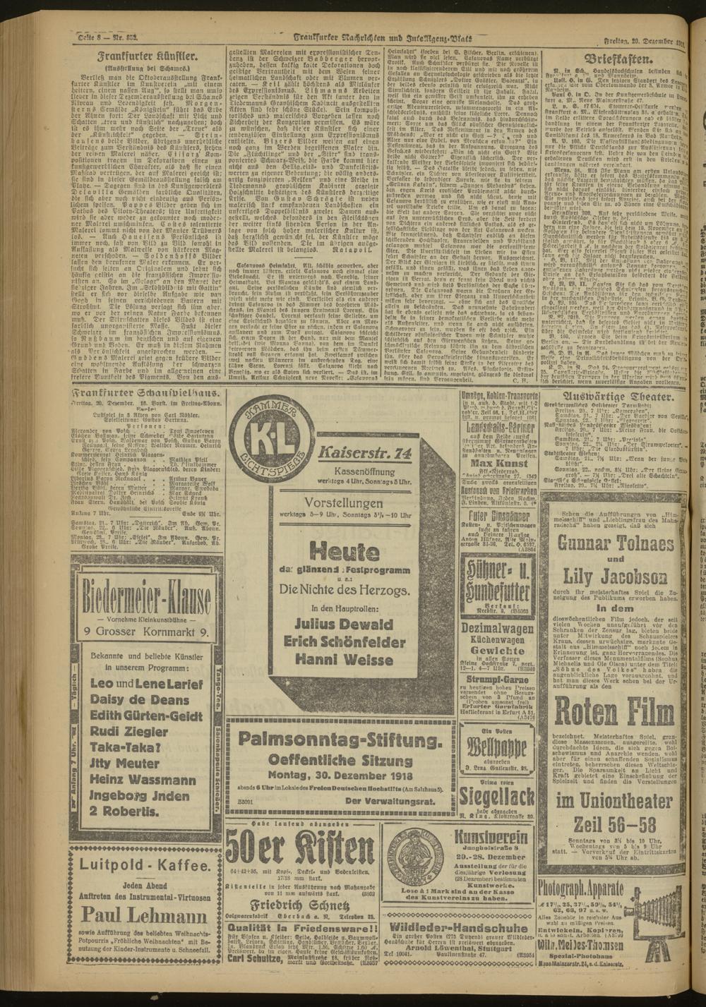 20.12.1918 Morgen-Ausgabe = Nr. 352