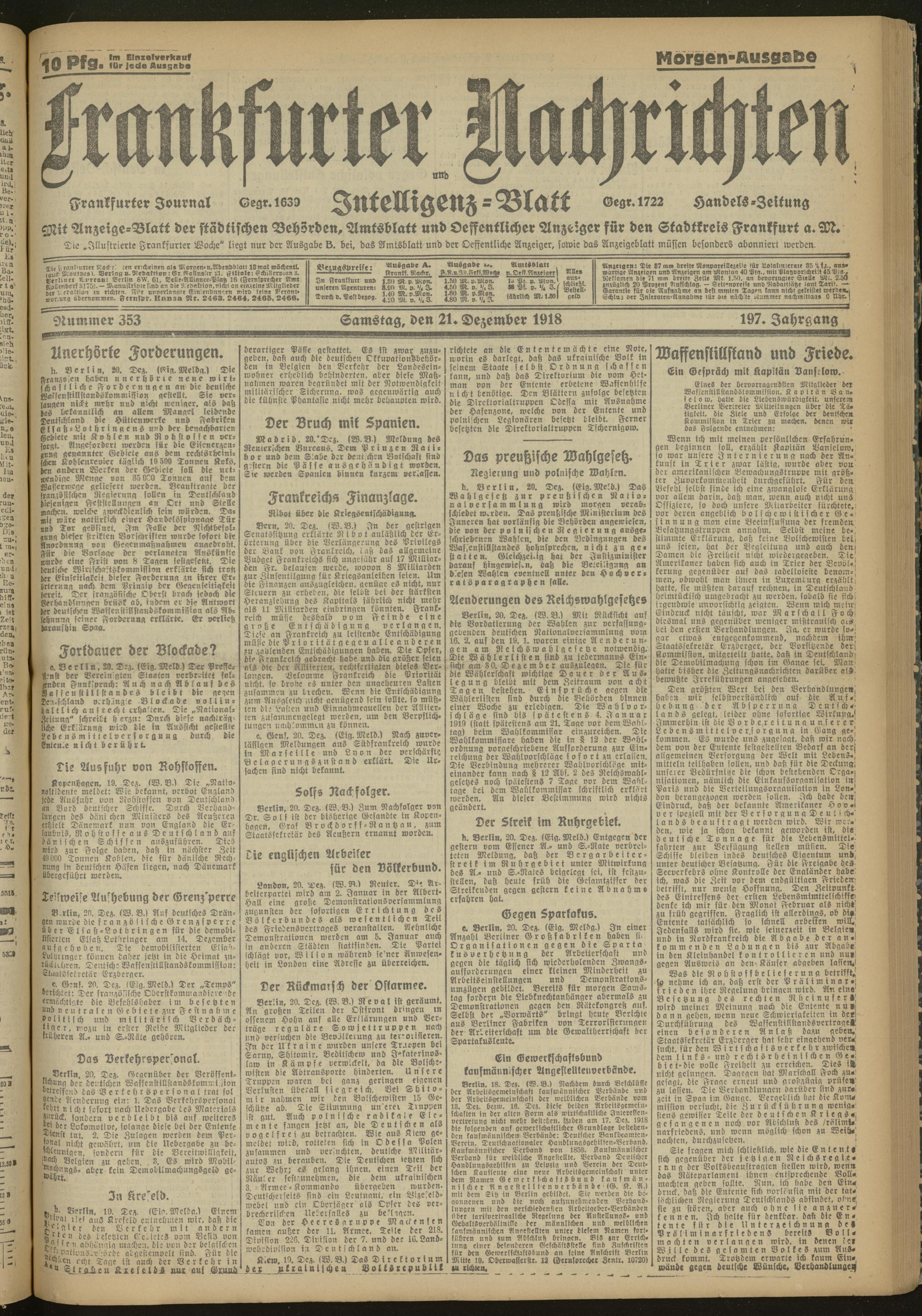 21.12.1918 Morgen-Ausgabe = Nr. 353