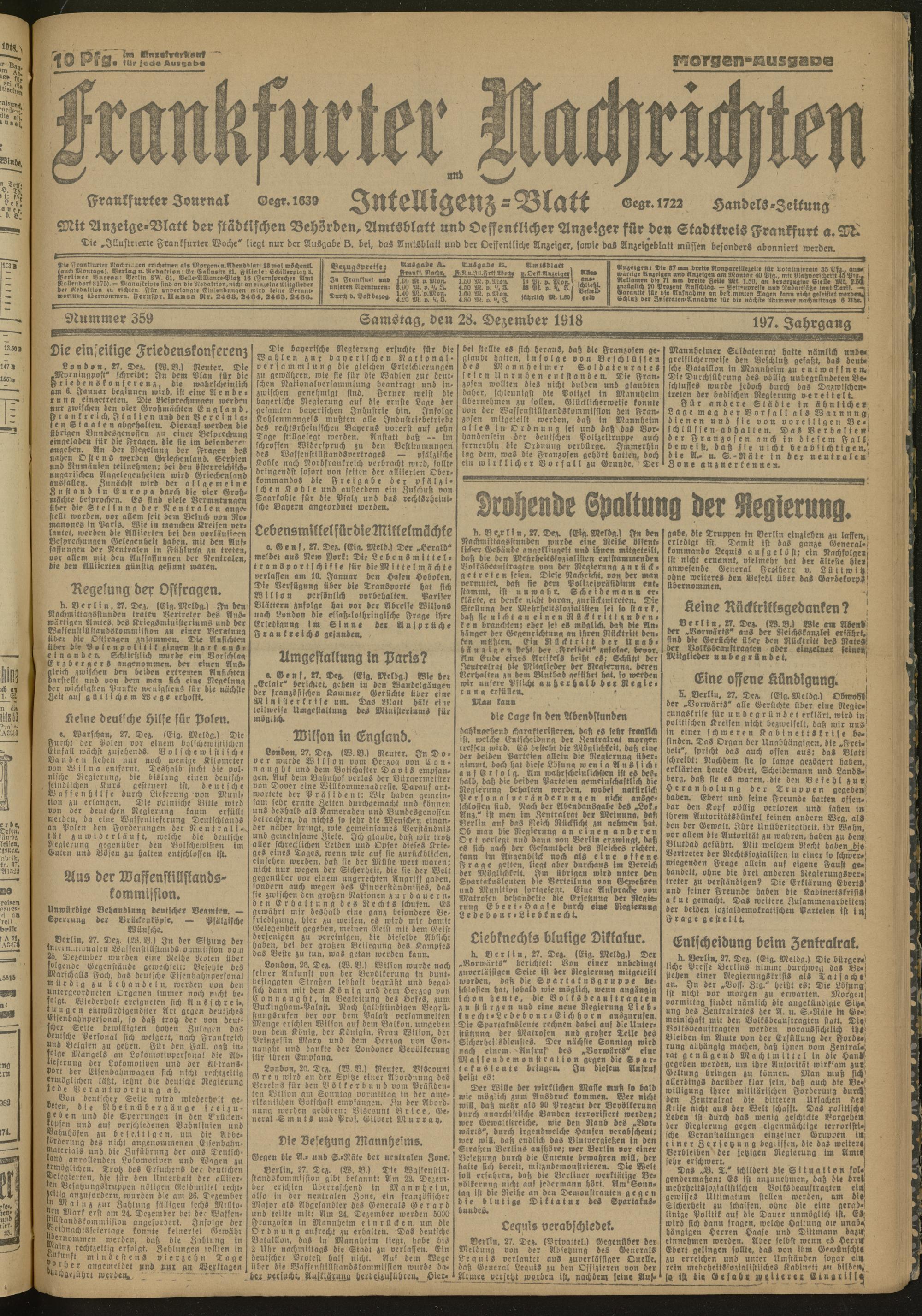 28.12.1918 Morgen-Ausgabe = Nr. 359