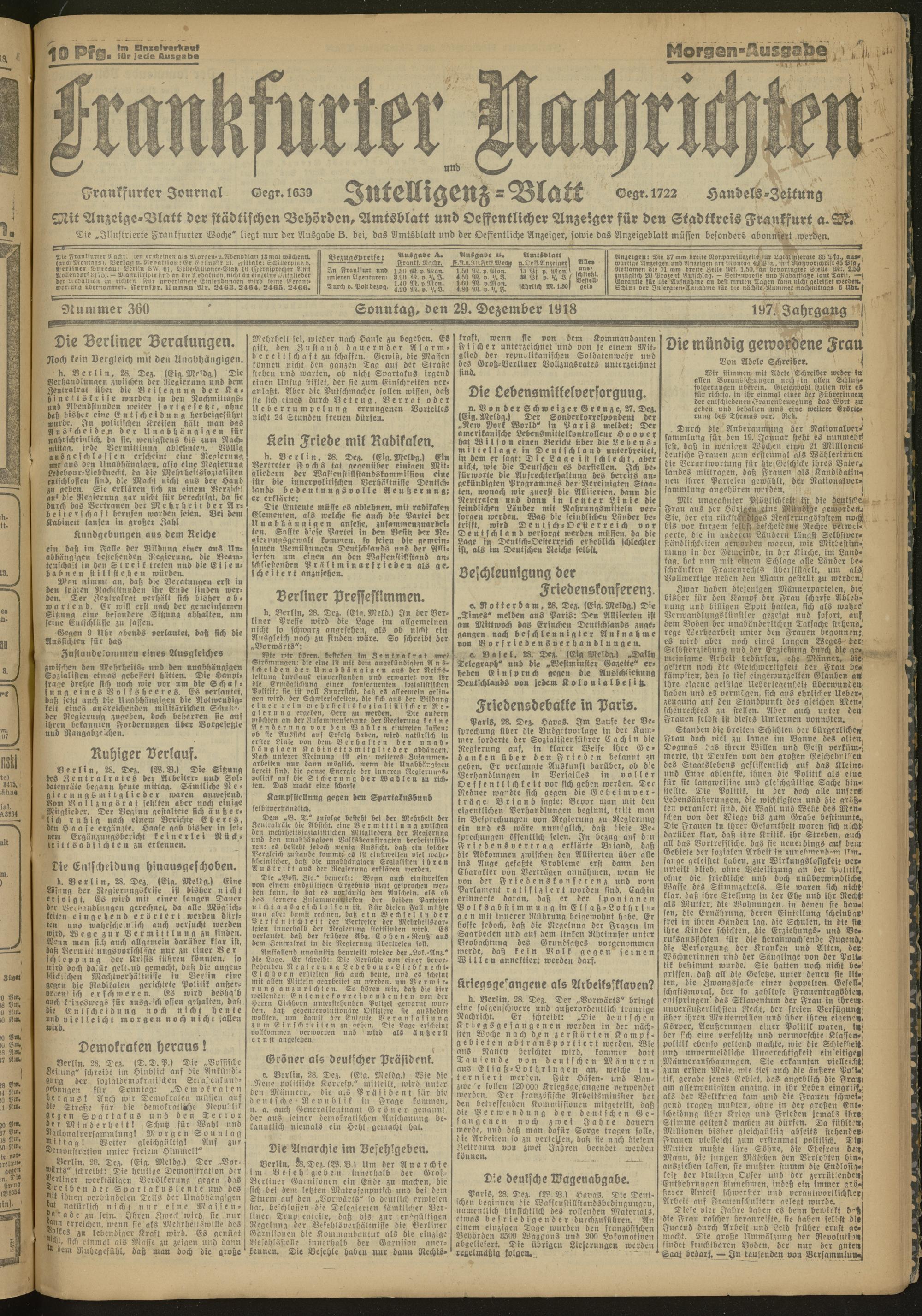 29.12.1918 Morgen-Ausgabe = Nr. 360