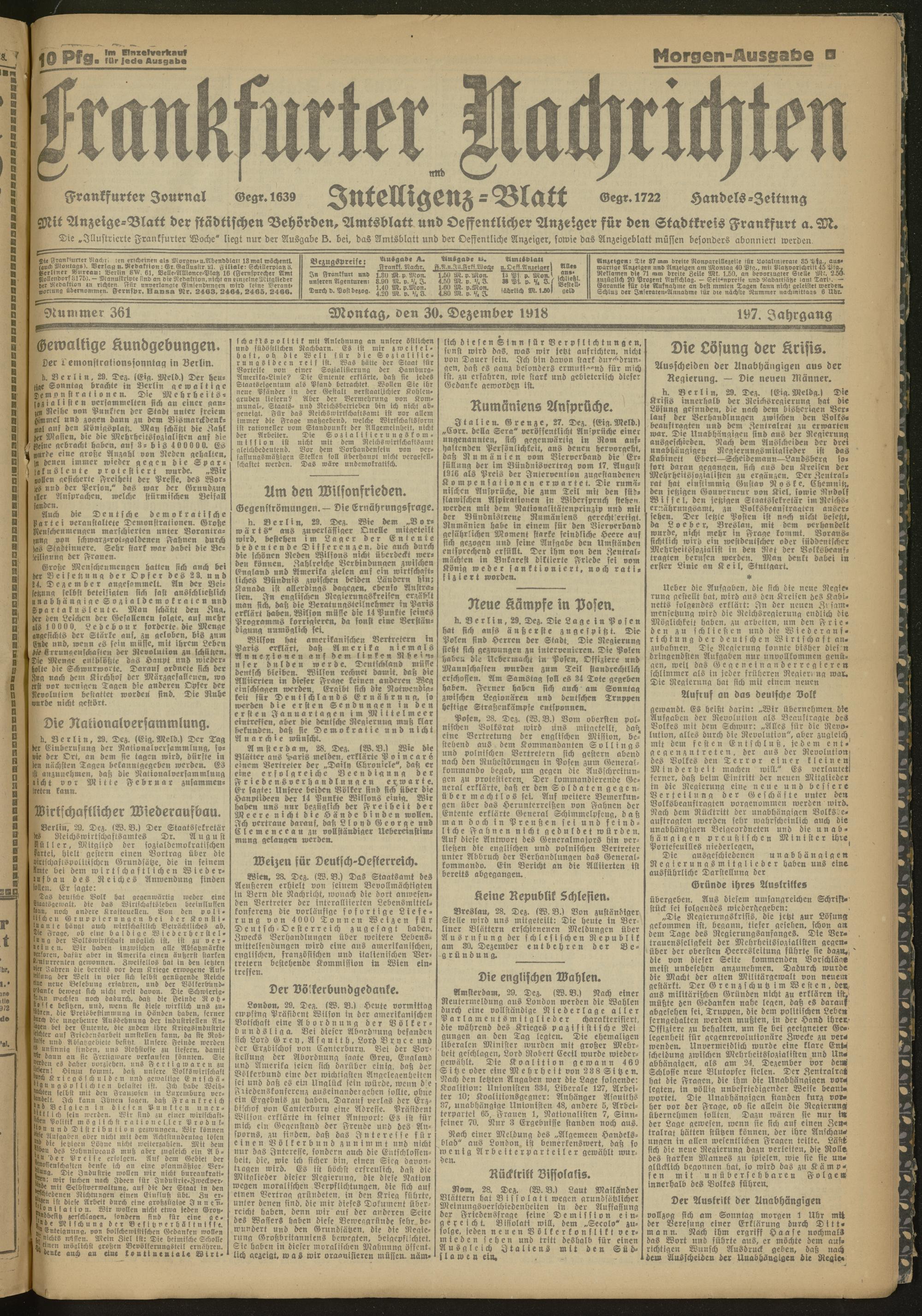 30.12.1918 Morgen-Ausgabe = Nr. 361