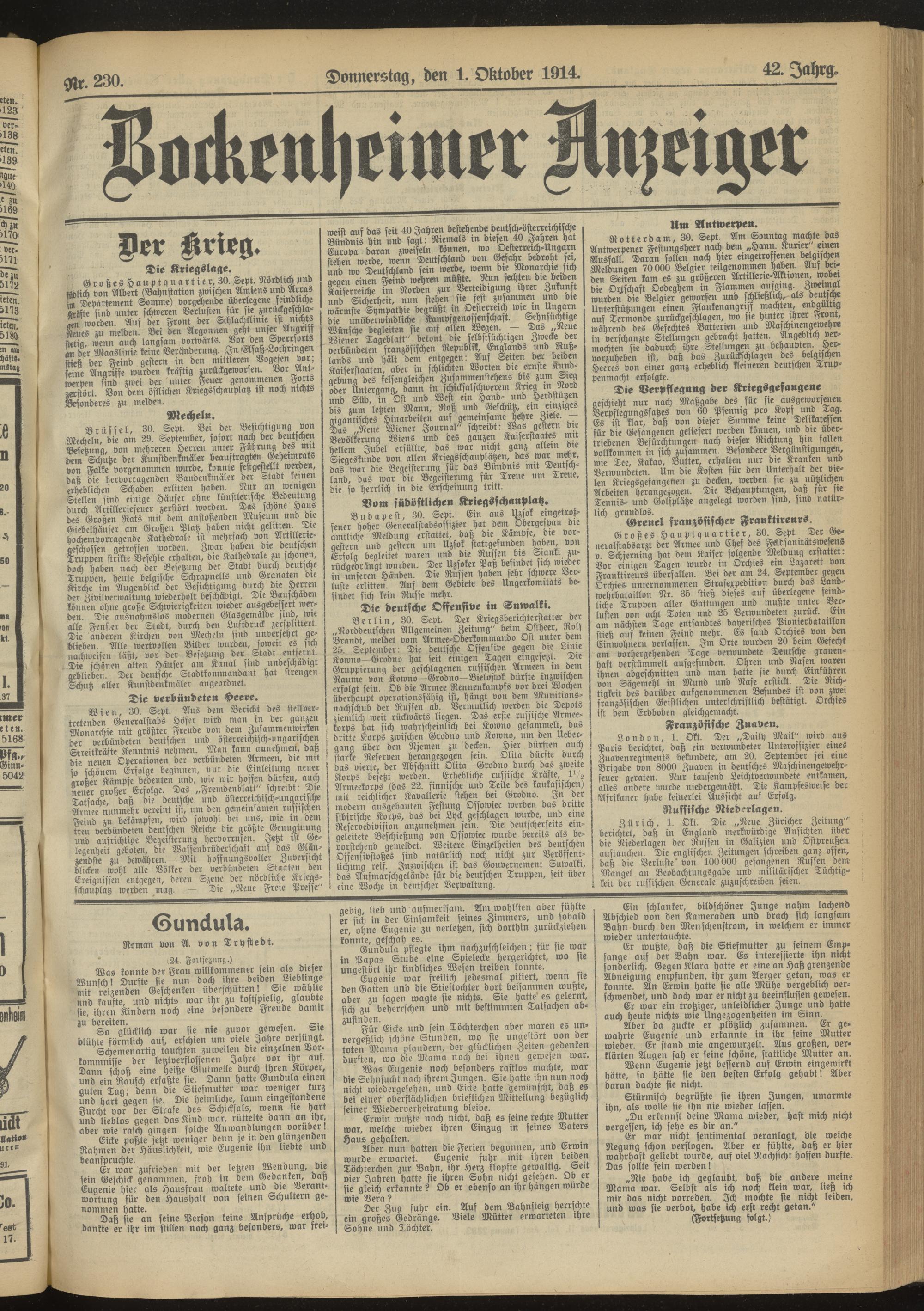 Regionale Zeitungen aus der Zeit des Ersten Weltkrieges
