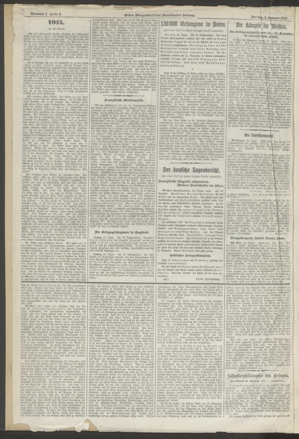 01.01.1915 = Nr. 1. Erstes Morgenblatt