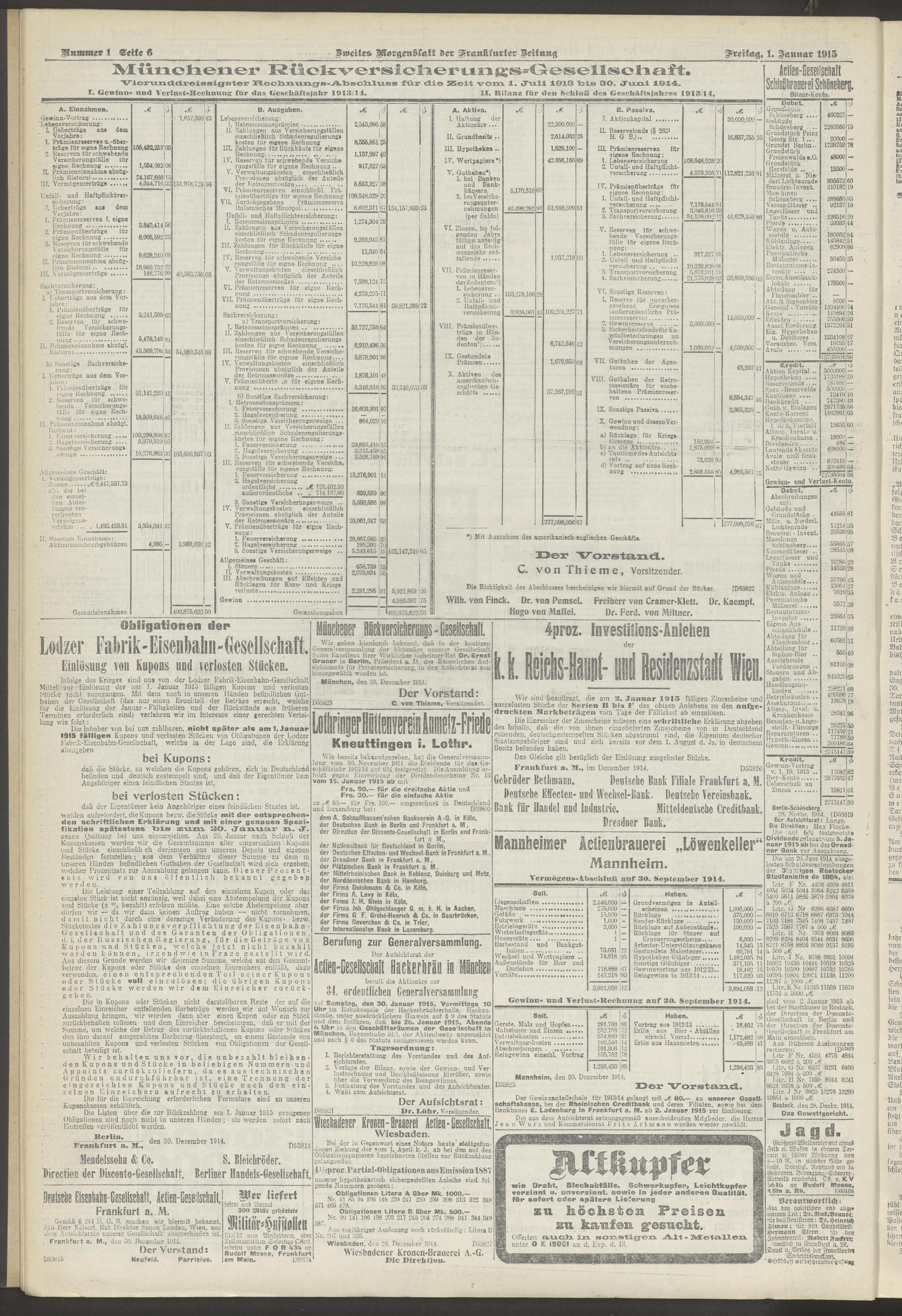 01.01.1915 = Nr. 1. Zweites Morgenblatt
