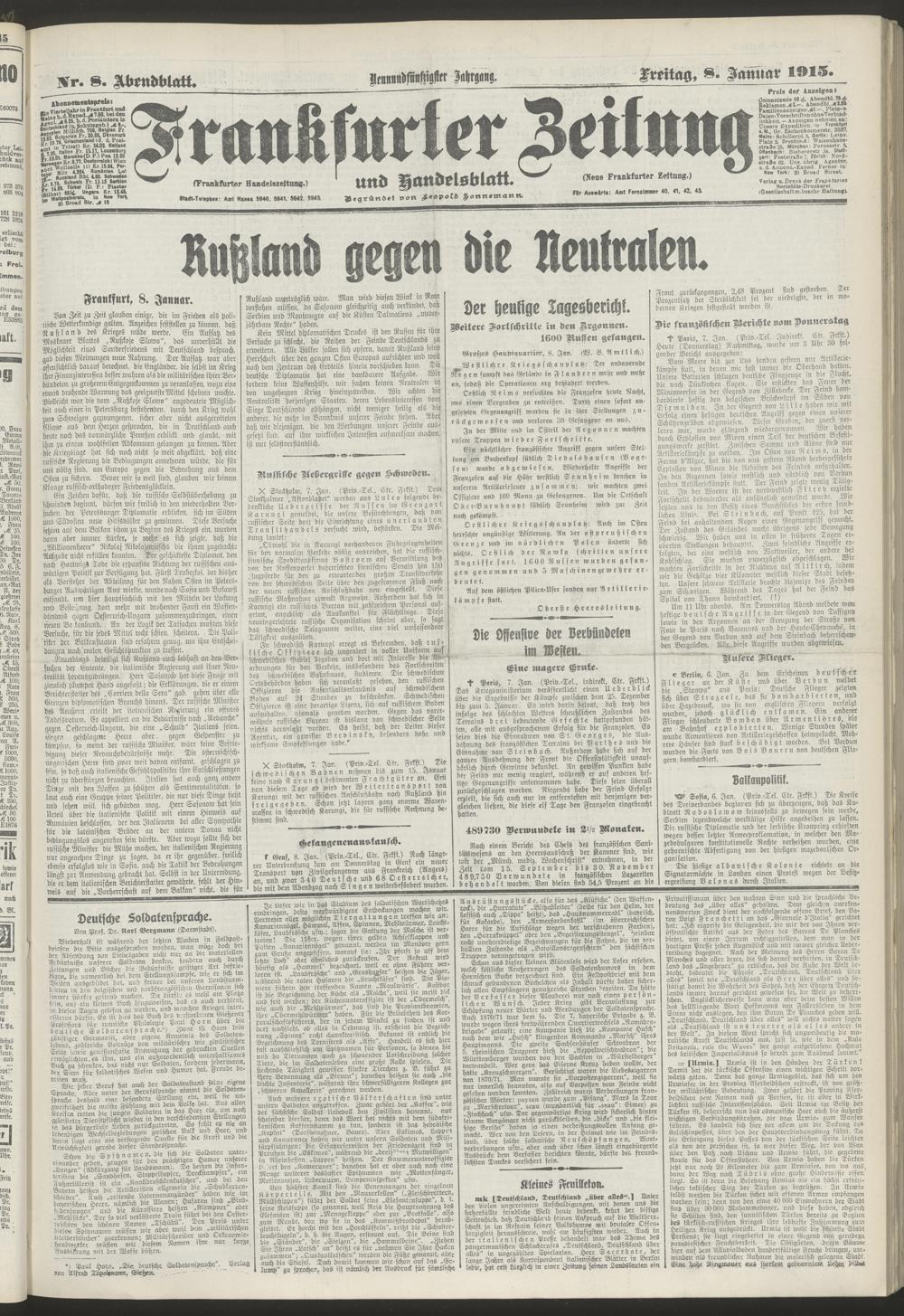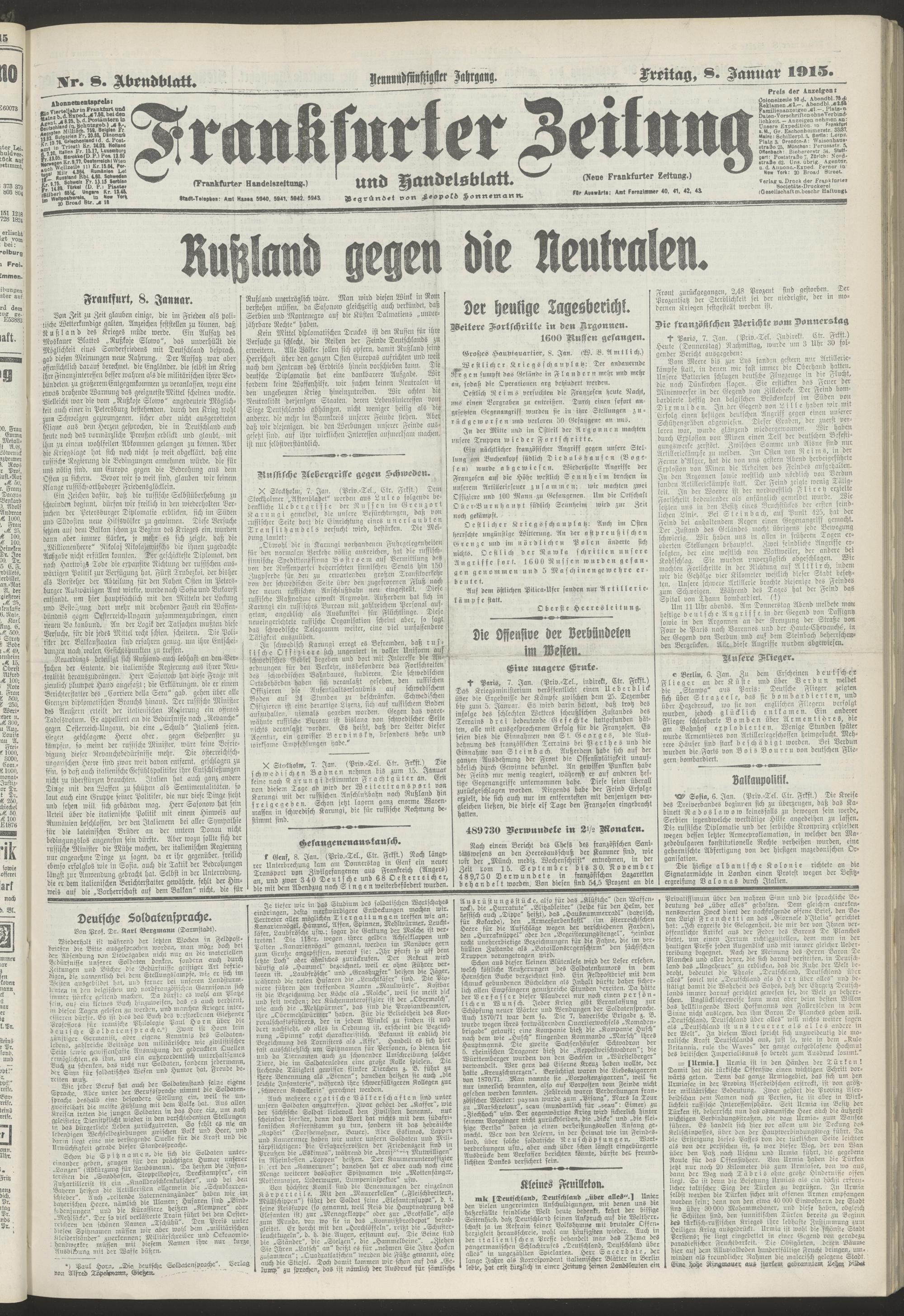 08.01.1915 = Nr. 8. Abendblatt