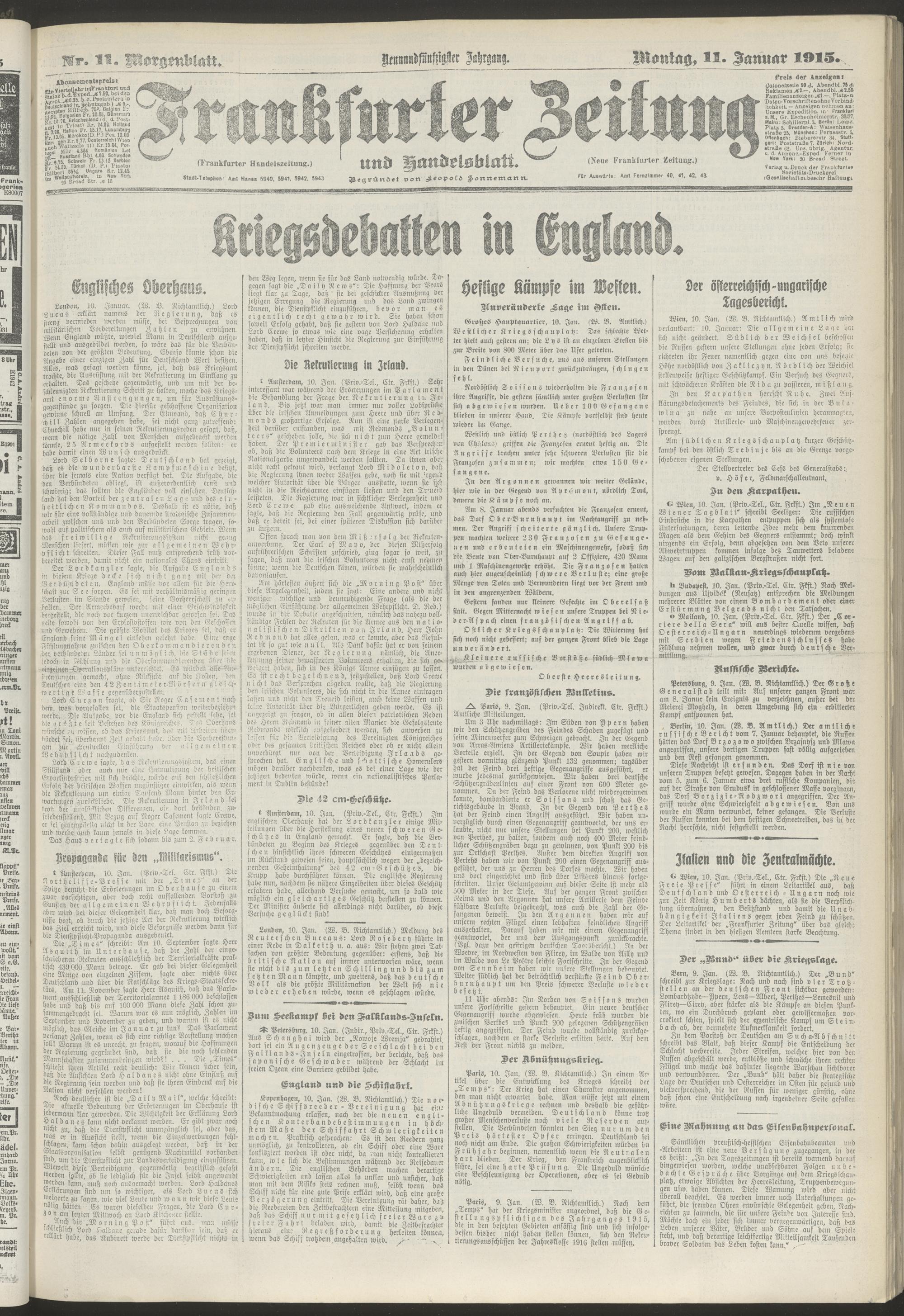 11.01.1915 = Nr. 11. Morgenblatt