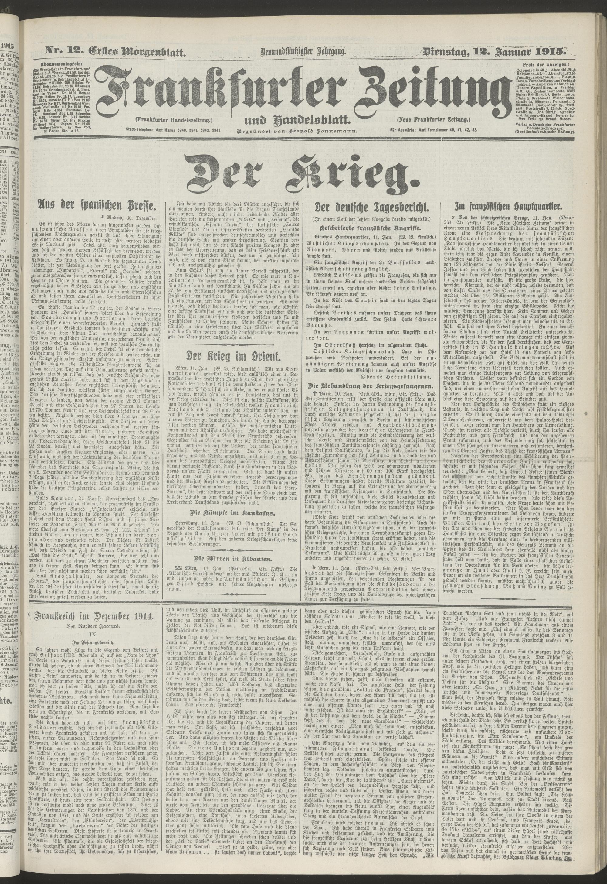 12.01.1915 = Nr. 12. Erstes Morgenblatt