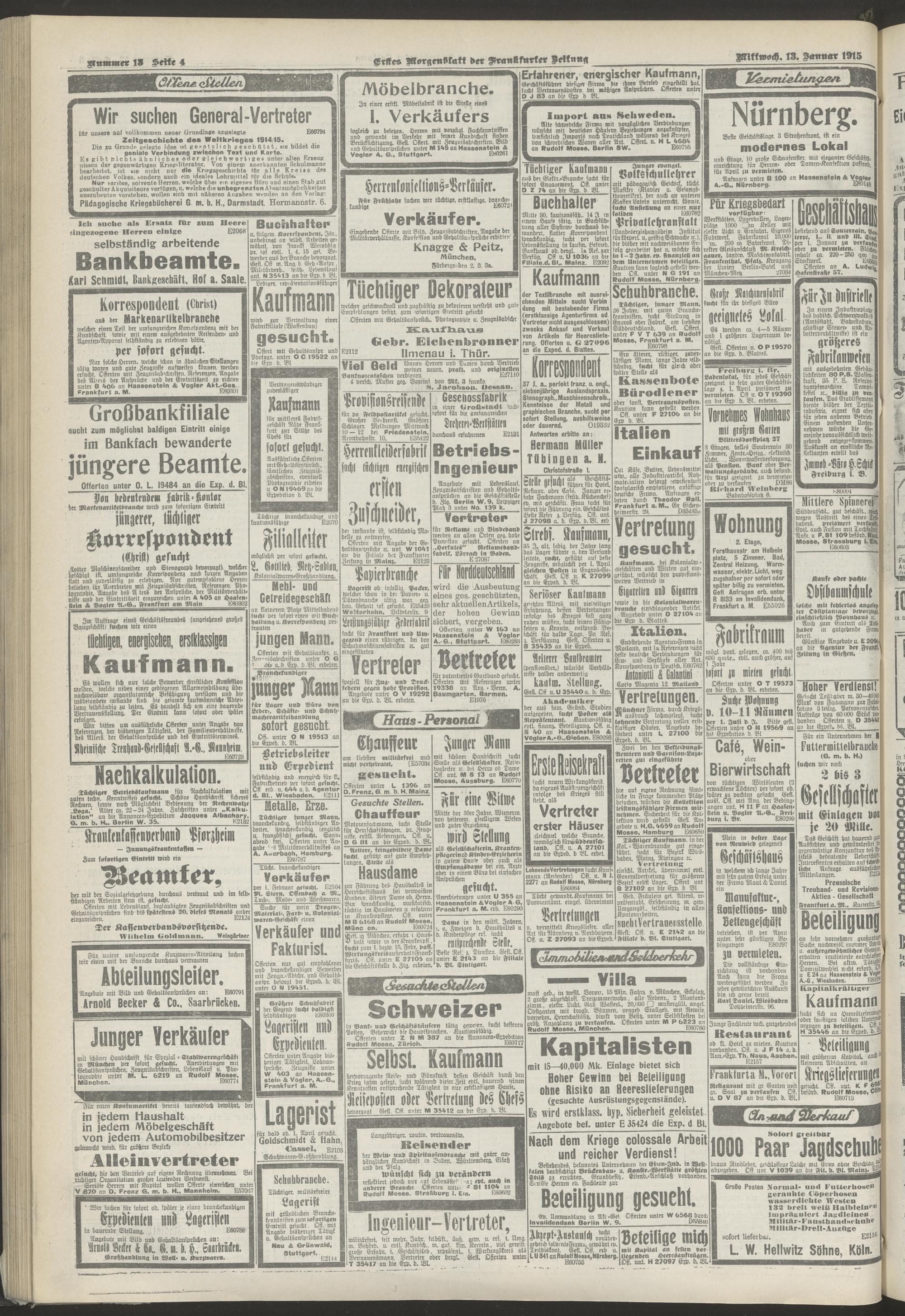 13.01.1915 = Nr. 13. Erstes Morgenblatt