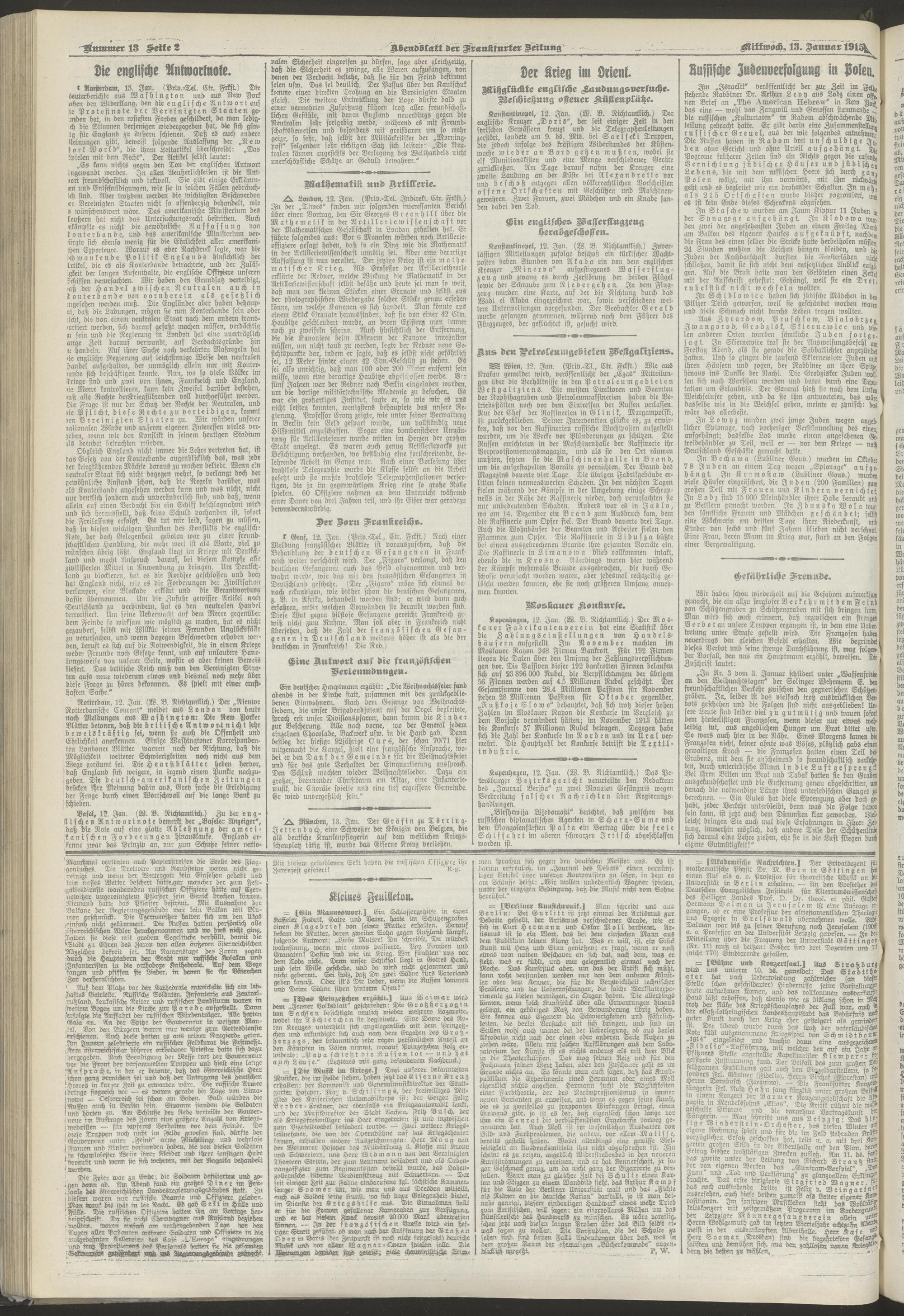 13.01.1915 = Nr. 13. Abendblatt