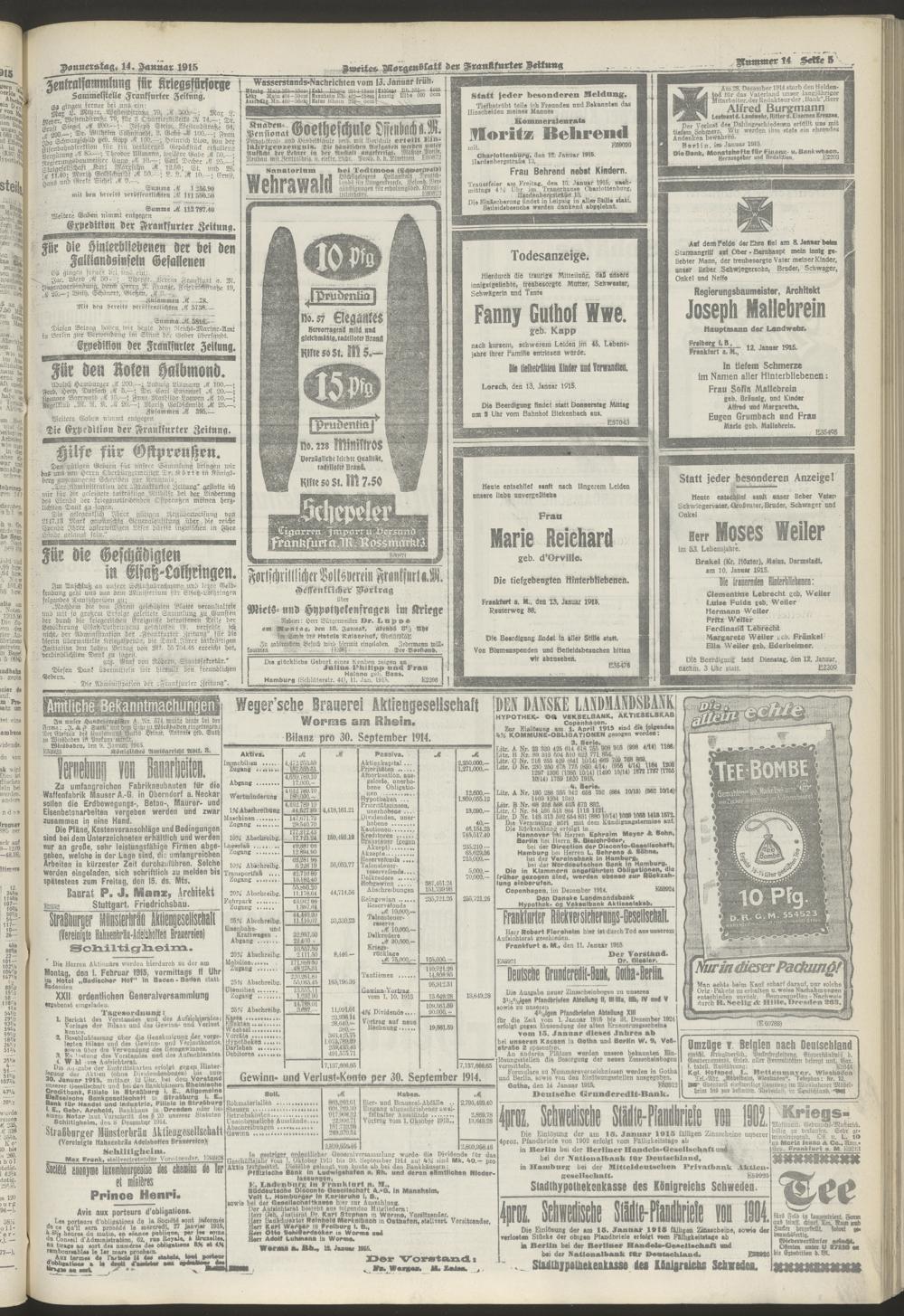 14.01.1915 = Nr. 14. Zweites Morgenblatt