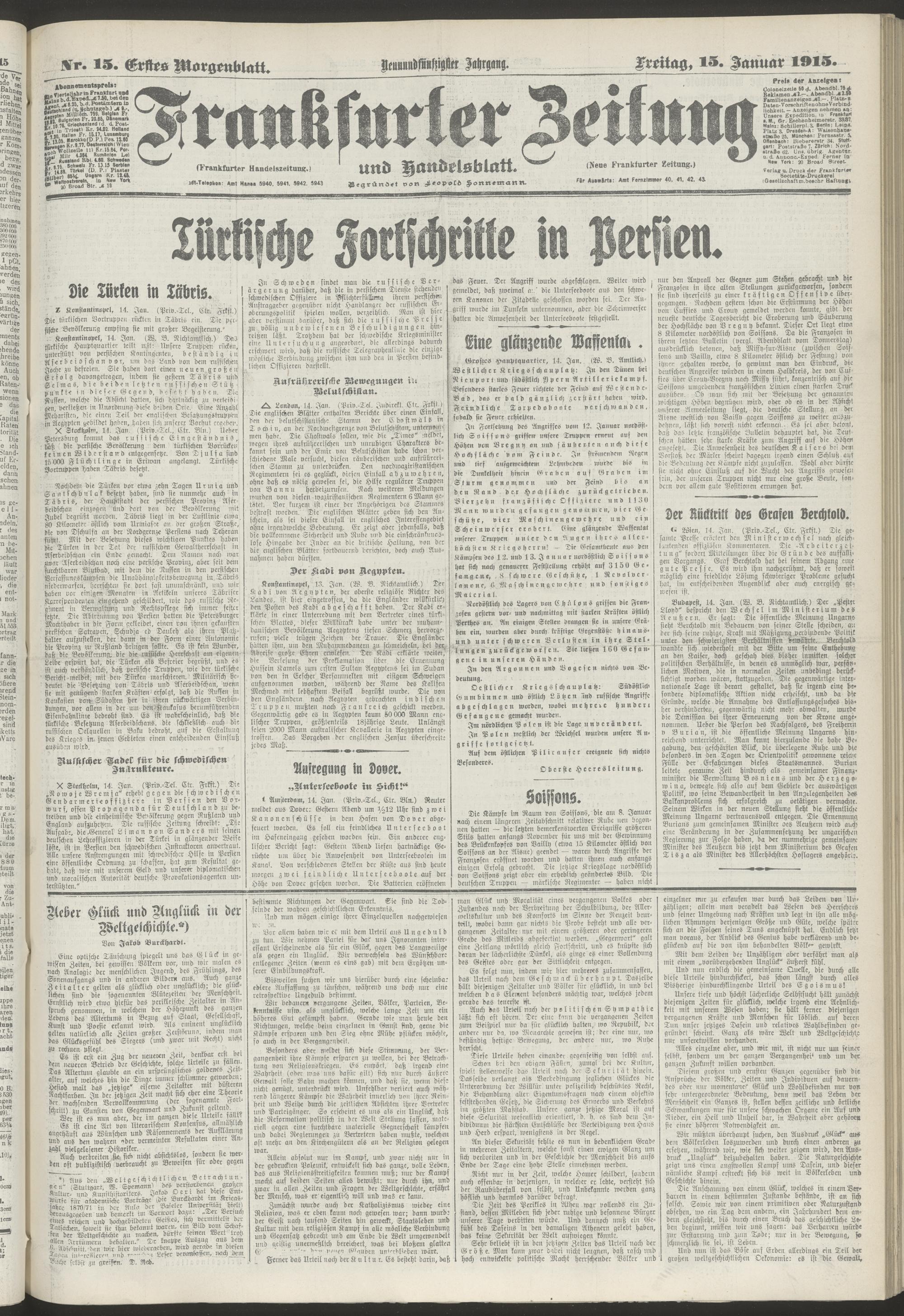 15.01.1915 = Nr. 15. Erstes Morgenblatt