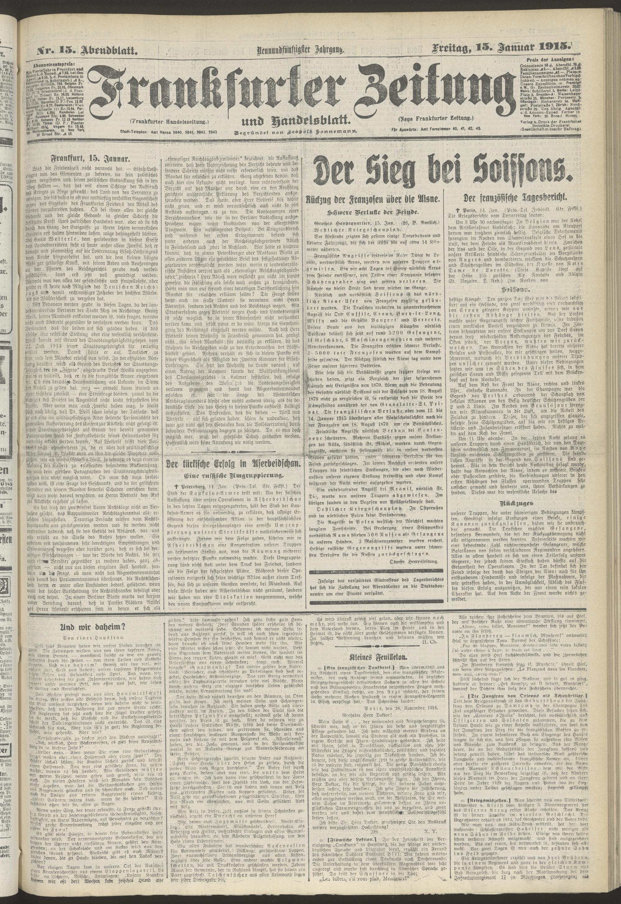 15.01.1915 = Nr. 15. Abendblatt