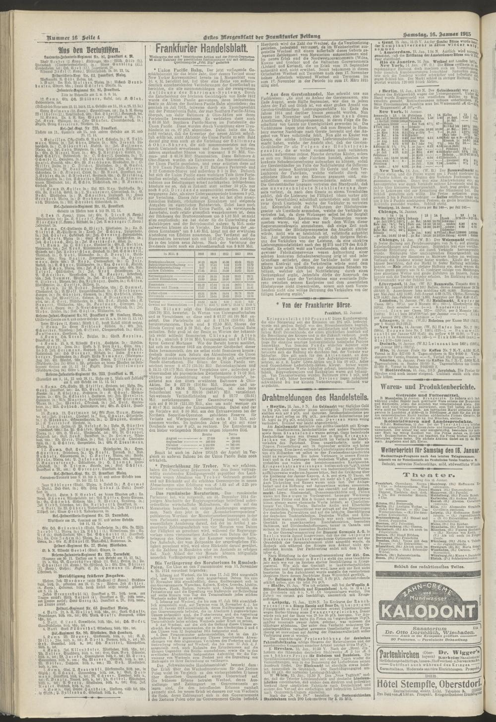 16.01.1915 = Nr. 16. Erstes Morgenblatt