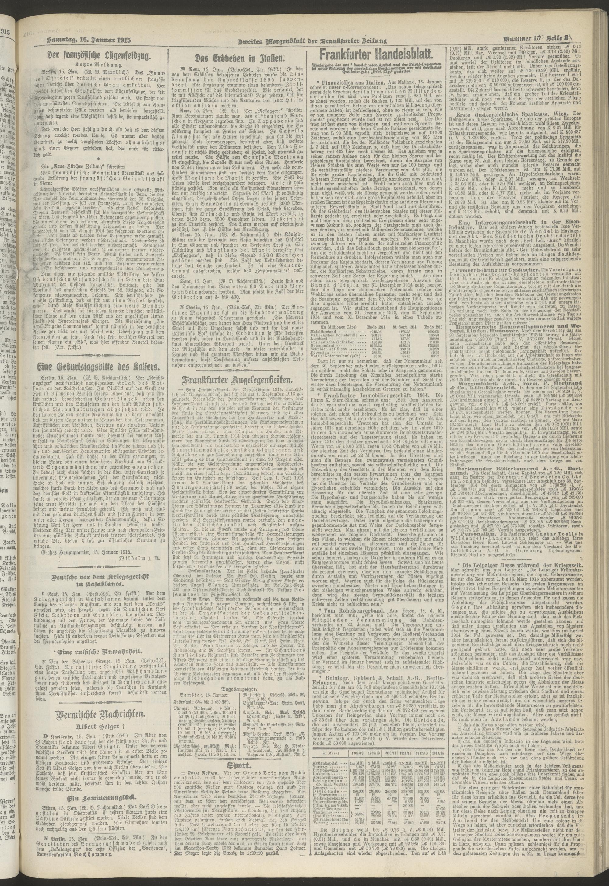 16.01.1915 = Nr. 16. Zweites Morgenblatt