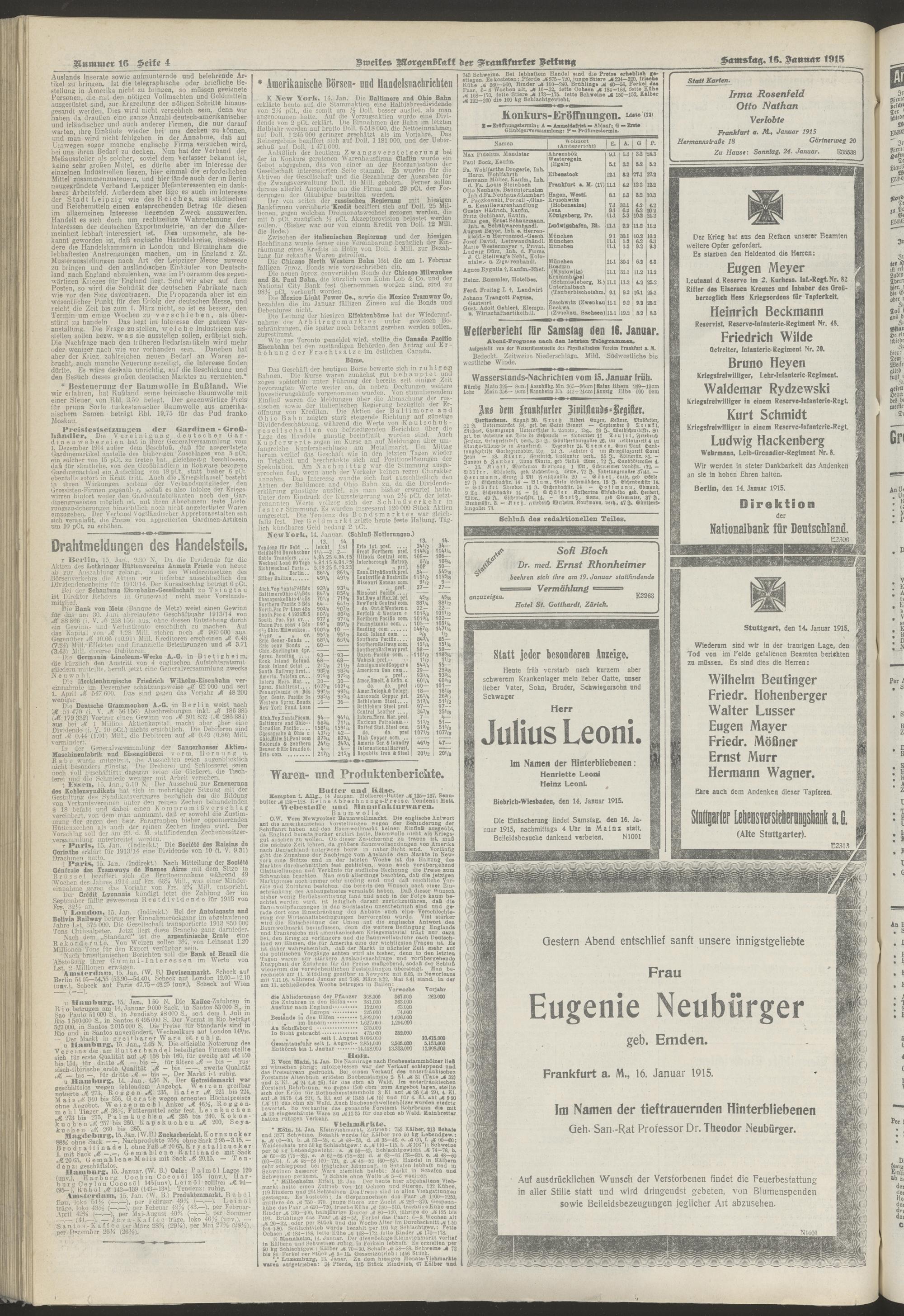 16.01.1915 = Nr. 16. Zweites Morgenblatt