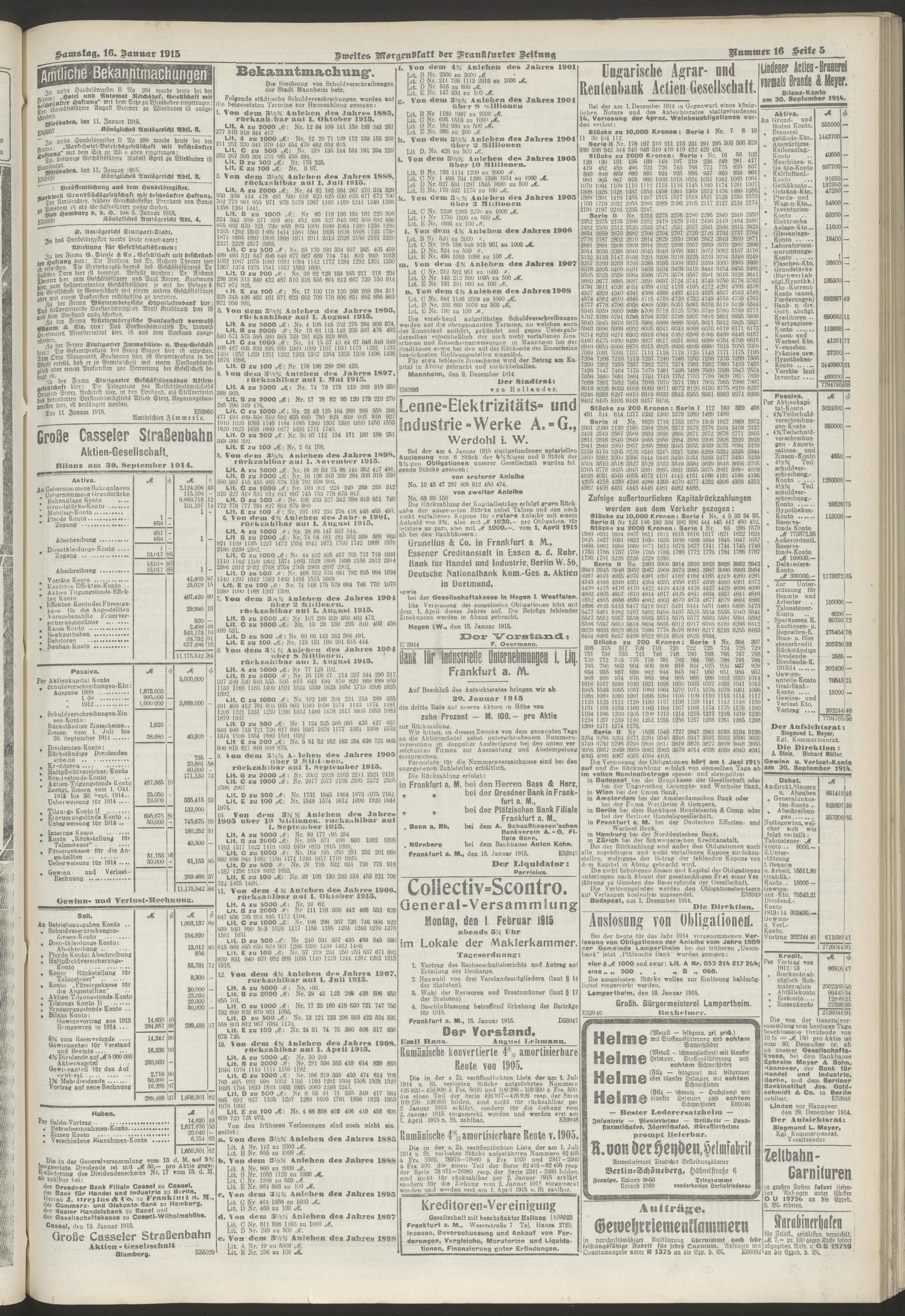 16.01.1915 = Nr. 16. Zweites Morgenblatt