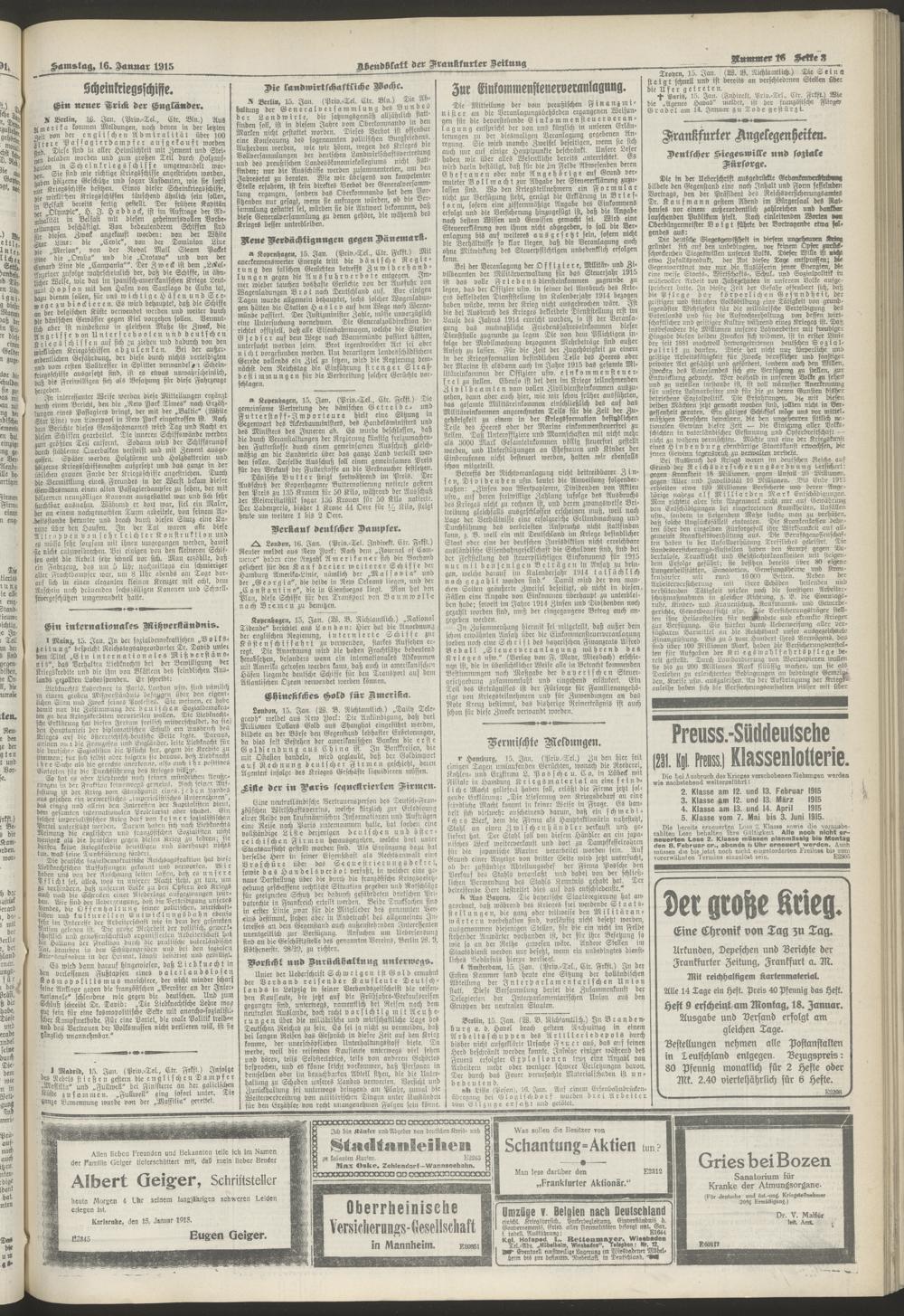 16.01.1915 = Nr. 16. Abendblatt