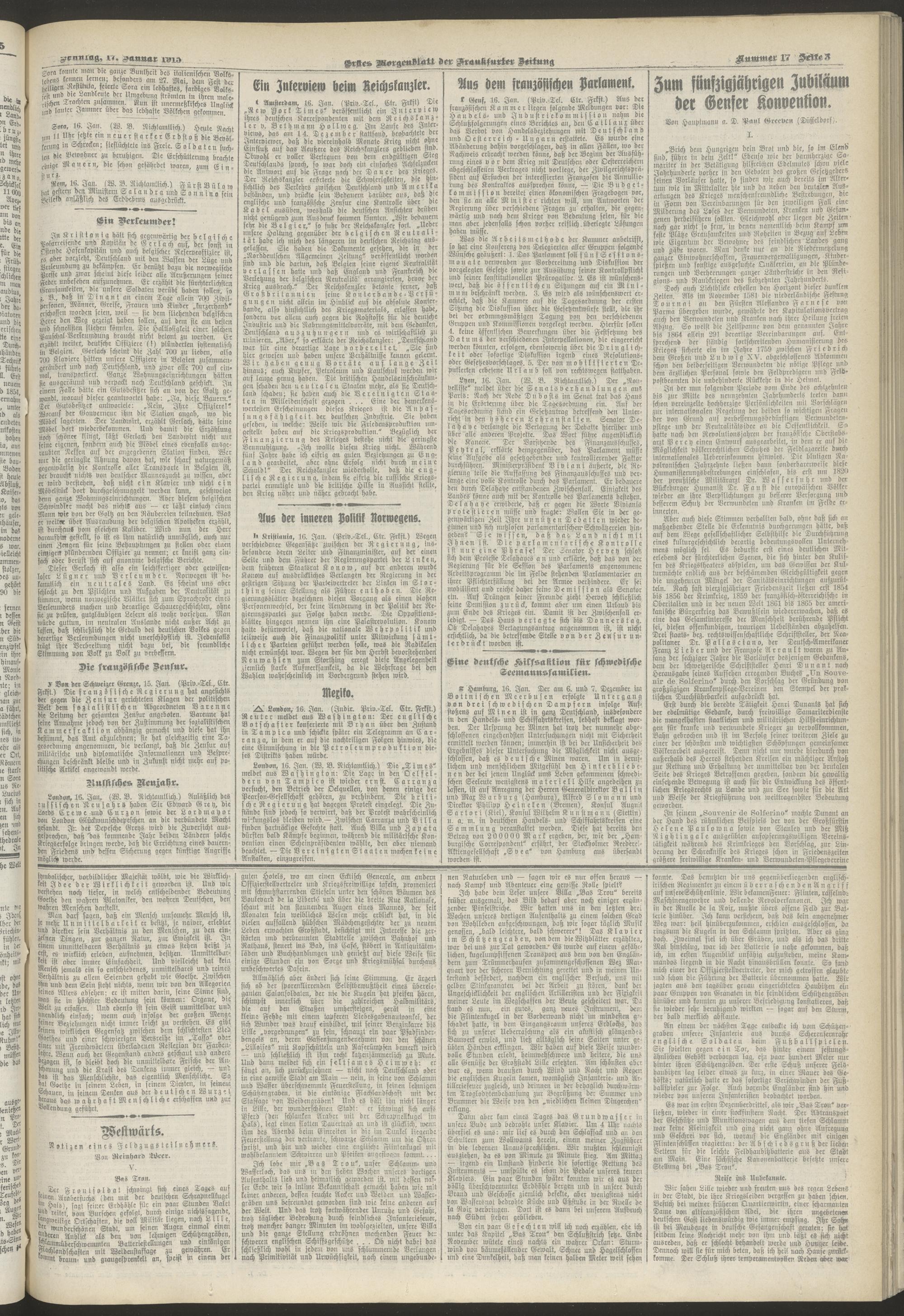 17.01.1915 = Nr. 17. Erstes Morgenblatt