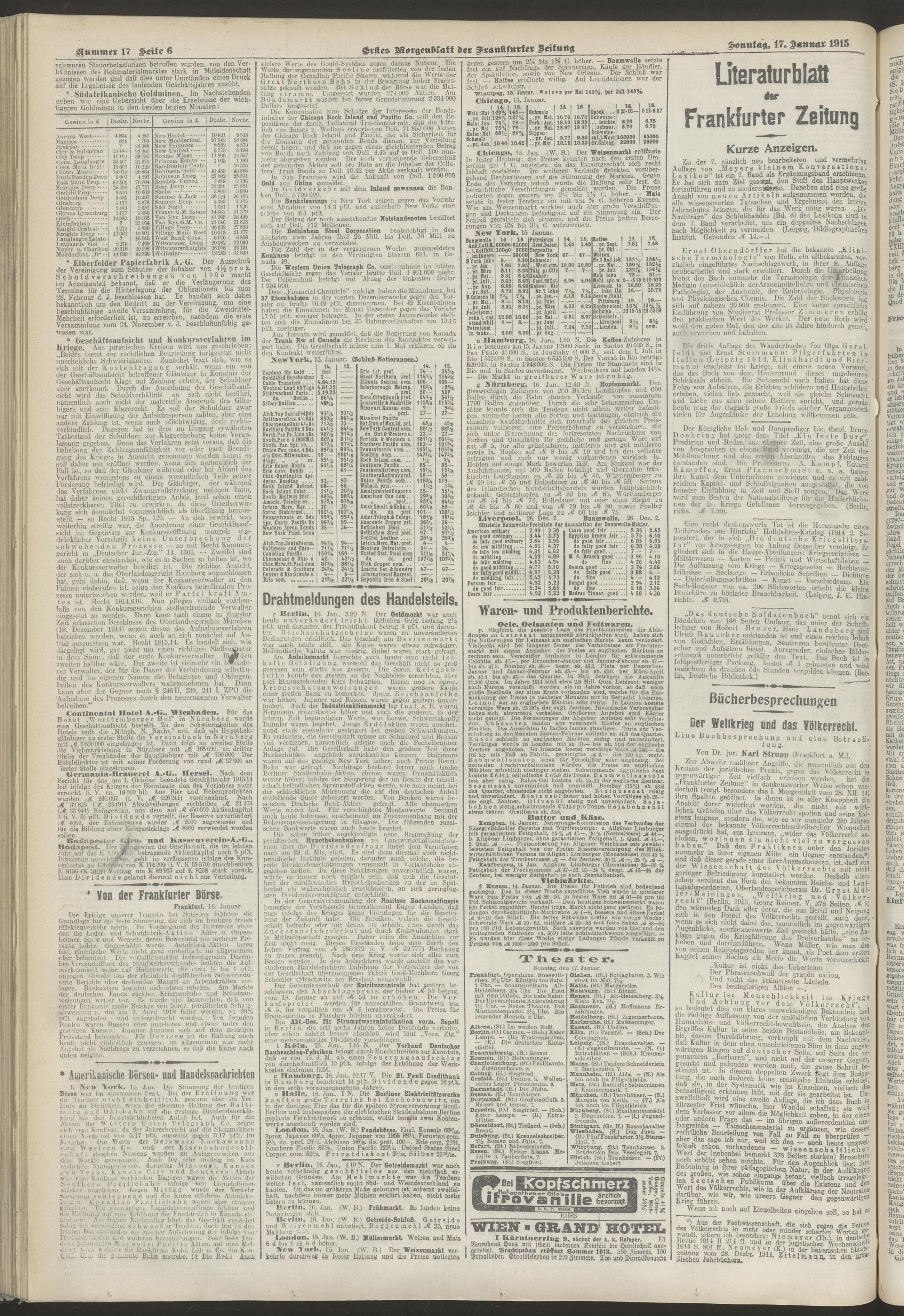 17.01.1915 = Nr. 17. Erstes Morgenblatt