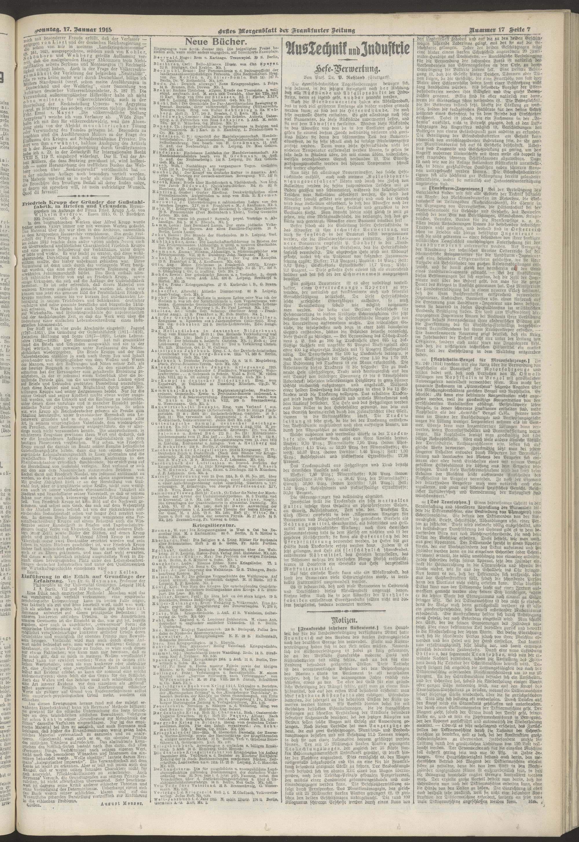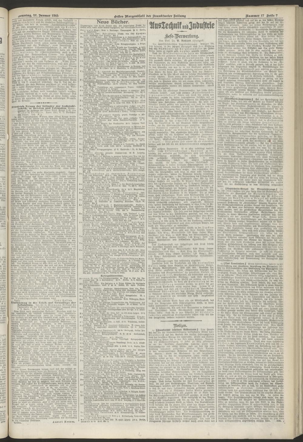 17.01.1915 = Nr. 17. Erstes Morgenblatt