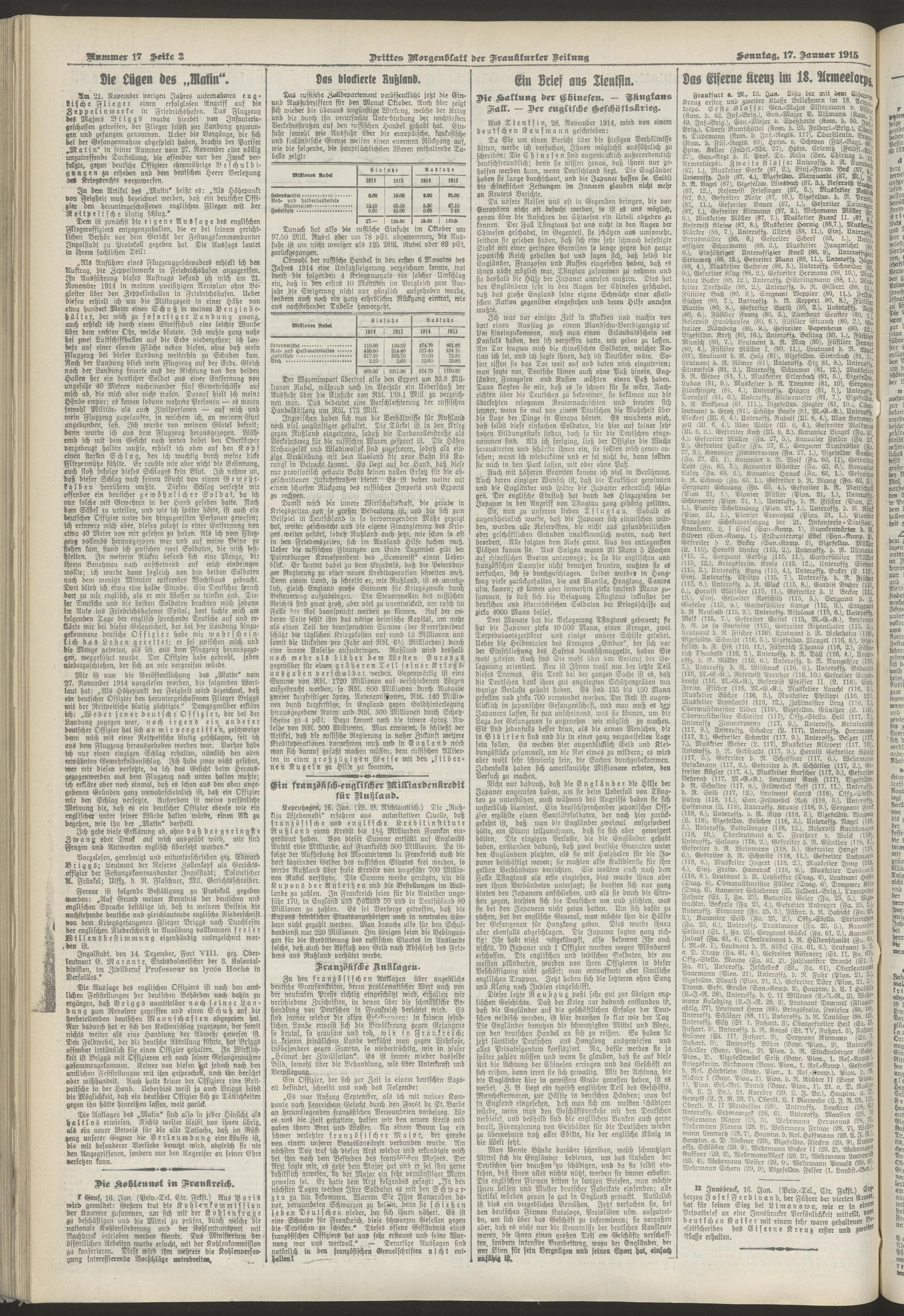 17.01.1915 = Nr. 17. Drittes Morgenblatt
