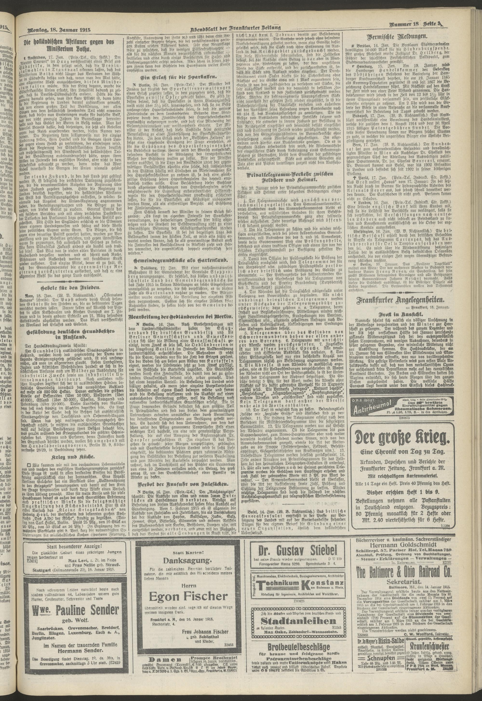 18.01.1915 = Nr. 18. Abendblatt