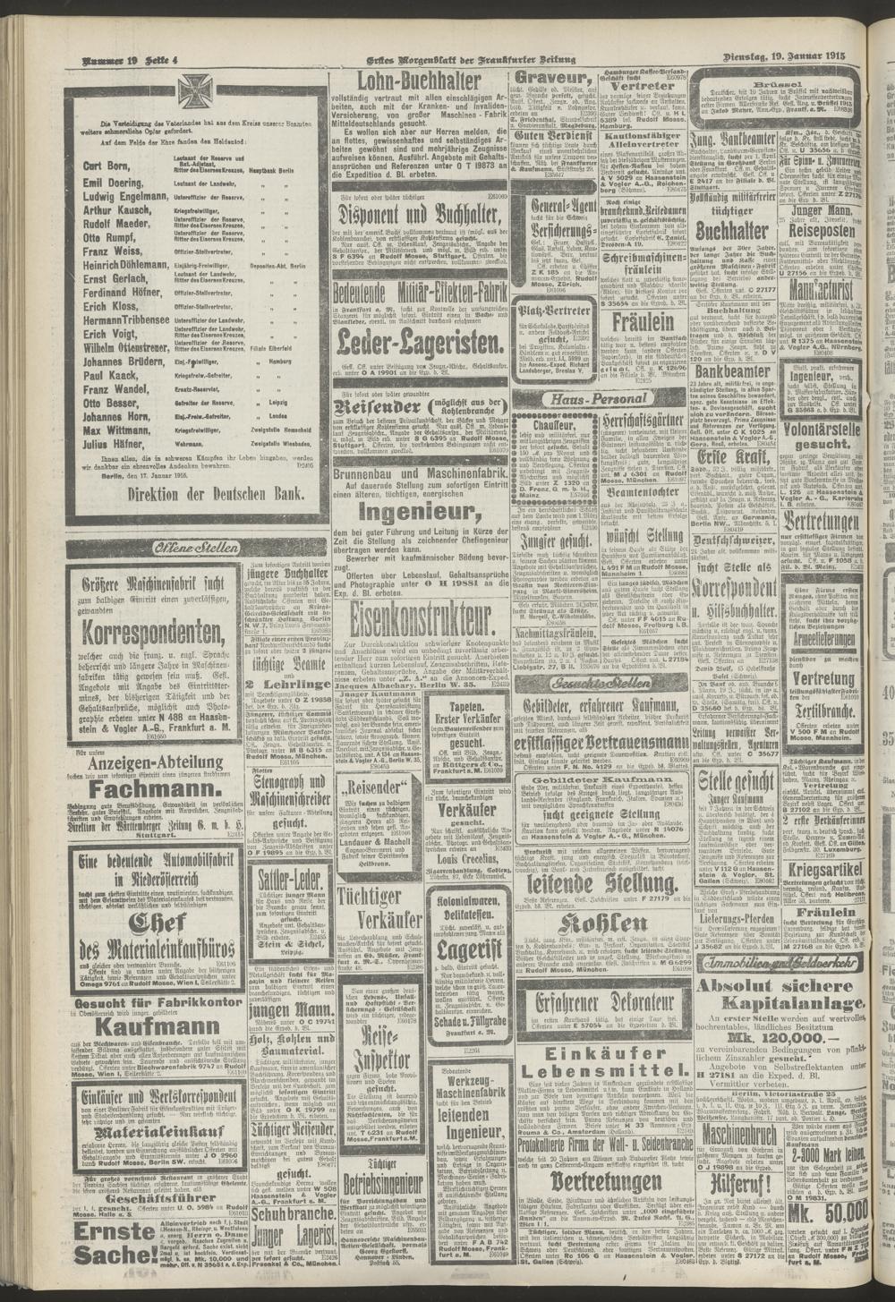 19.01.1915 = Nr. 19. Erstes Morgenblatt