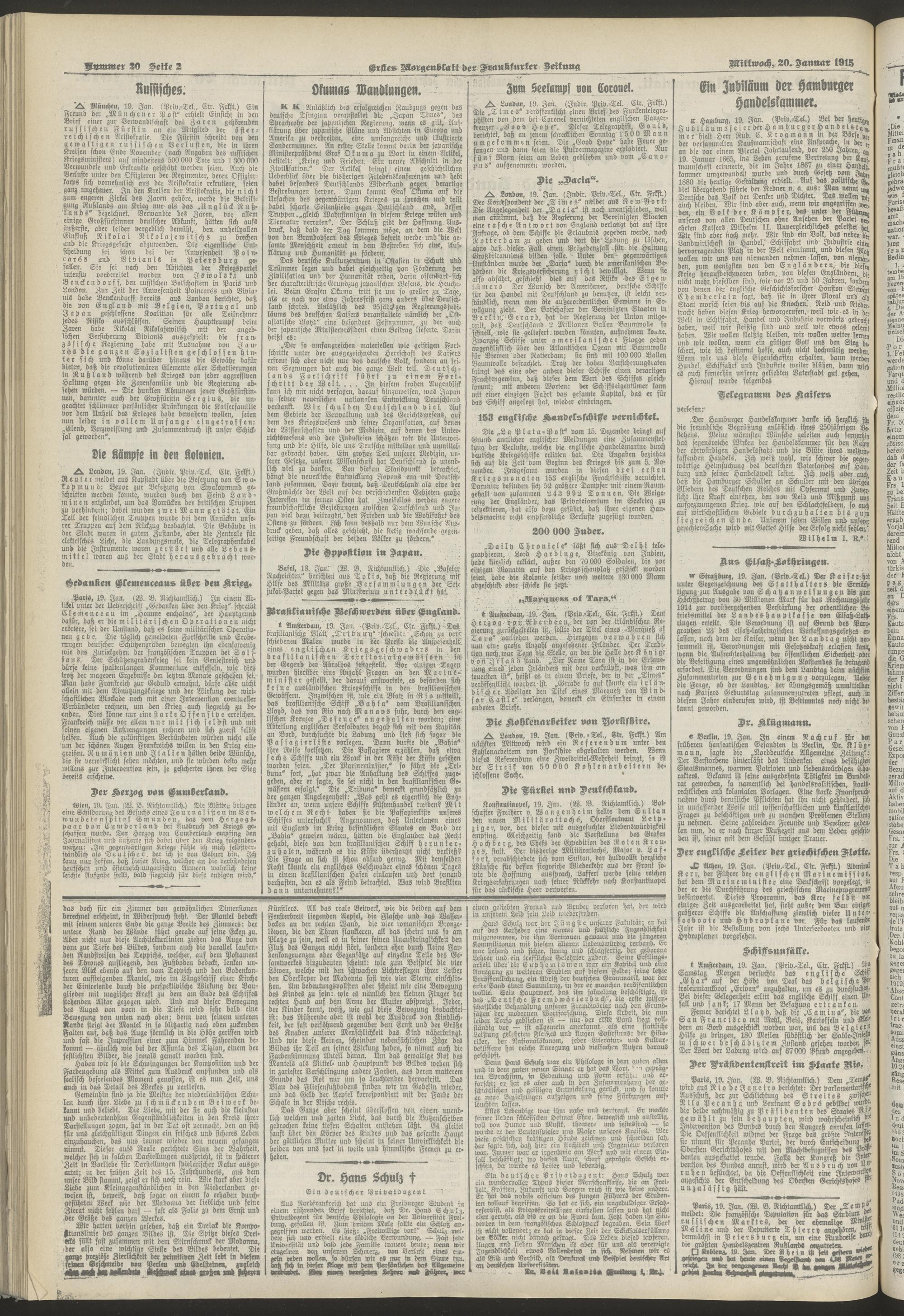20.01.1915 = Nr. 20. Erstes Morgenblatt