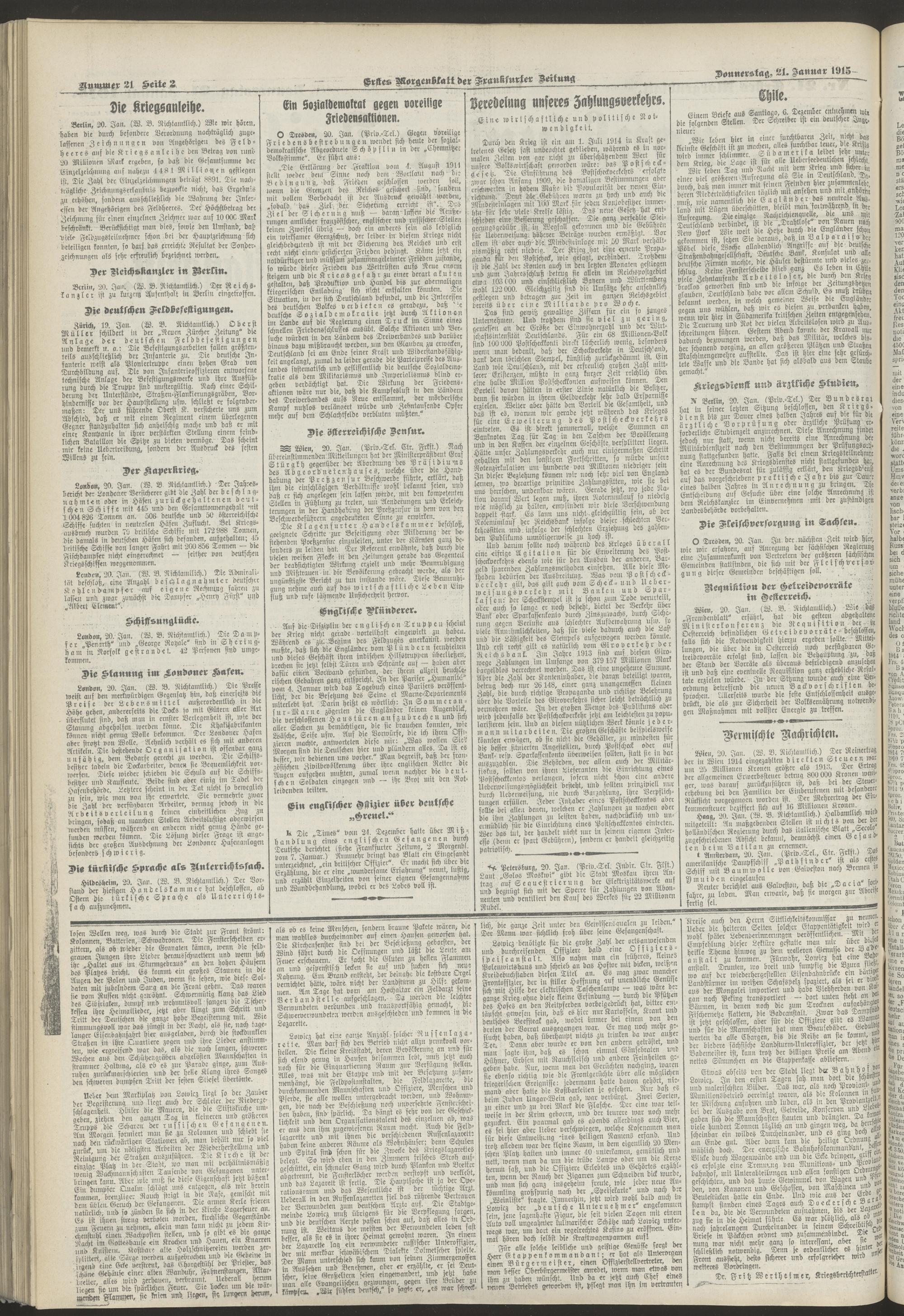 21.01.1915 = Nr. 21. Erstes Morgenblatt